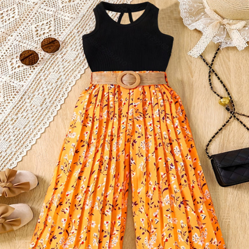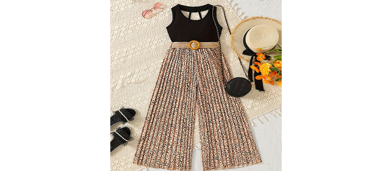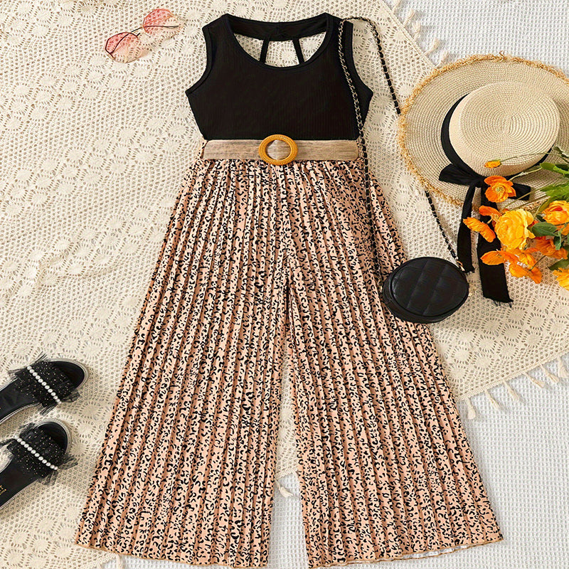 طقم ملابس بناتي من ثلاث قطع بتصميم مزود بحزام