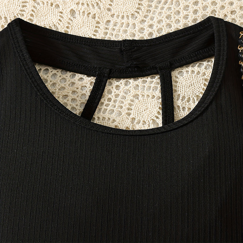 طقم محبوك مع بلوزة قصيرة الأكمام وسروال واسع