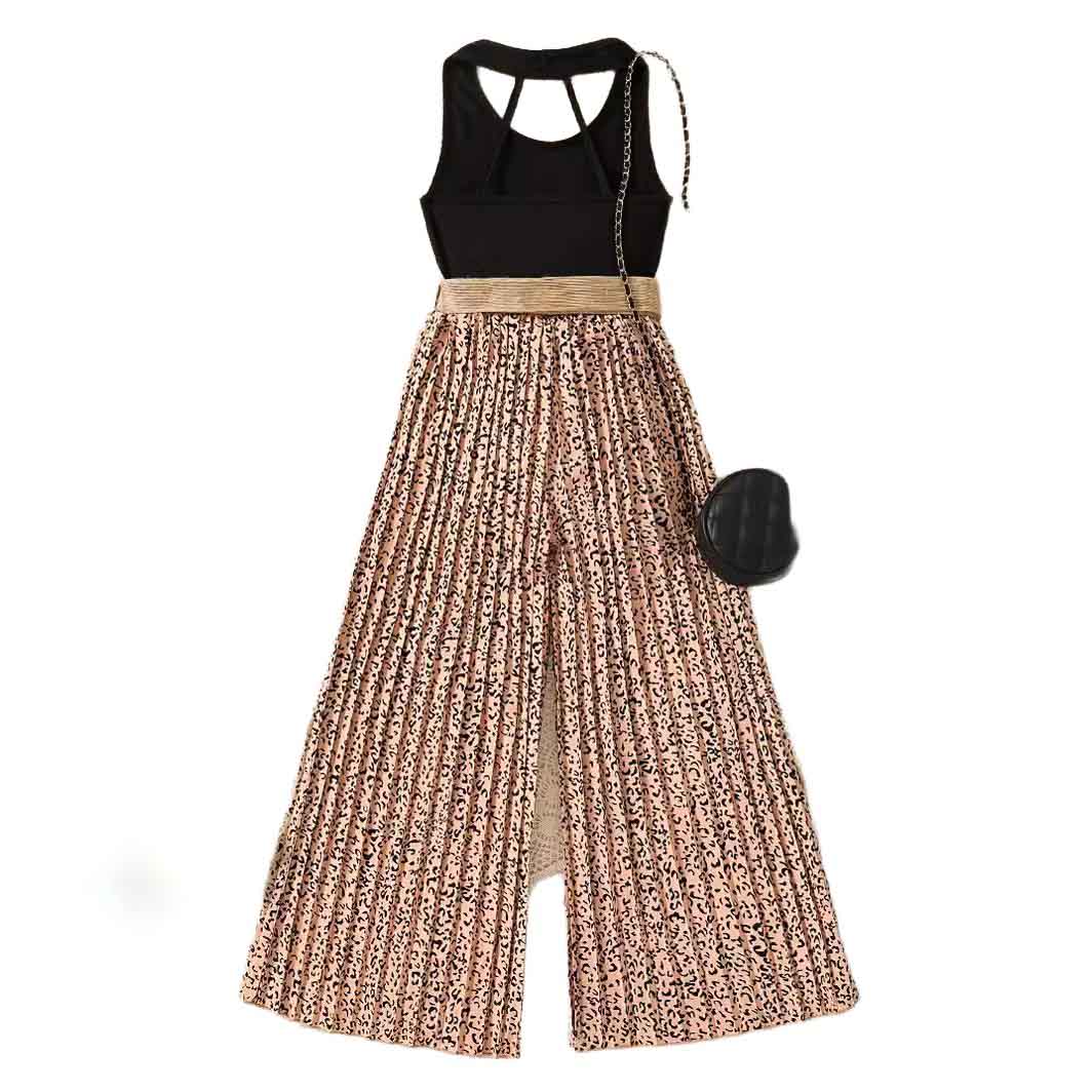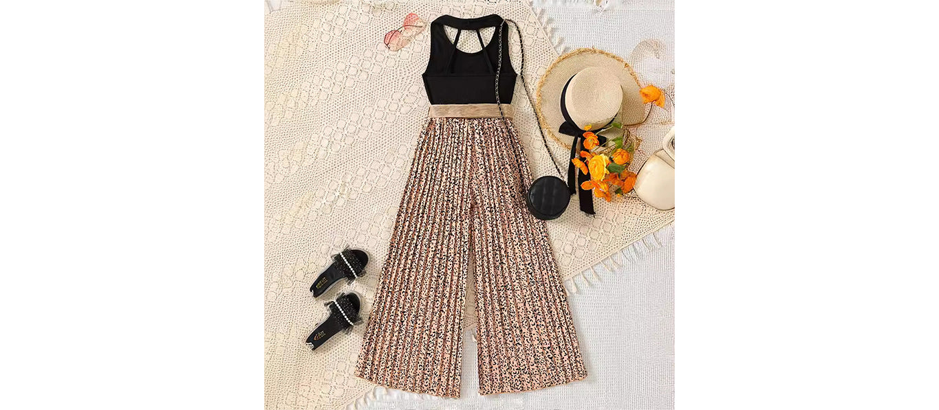 طقم من قطعتين يتكون من بلوزة قصيرة الأكمام وسروال واسع
