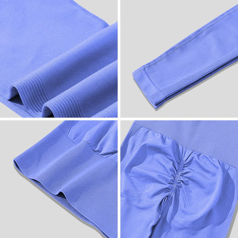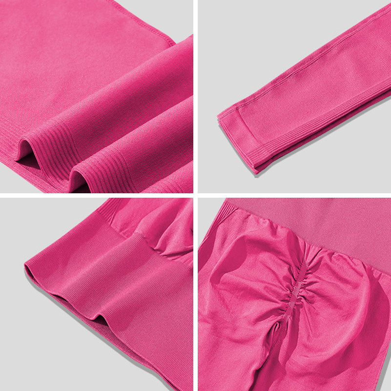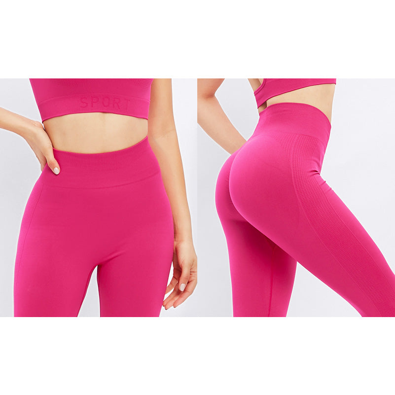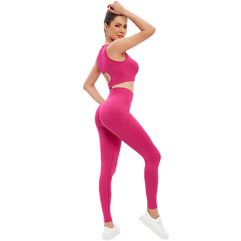 طقم ملابس رياضية نسائية مكون من قطعتين، يشمل حمالة صدر رياضية بدون خياطة توفر دعمًا مريحًا ومرونة مثالية أثناء التمارين. تصميمه يضمن حرية الحركة ويقلل من الاحتكاك، مما يجعله خيارًا مثاليًا لليوجا والتمارين الرياضية المختلفة. مصنوع من خامات عالية الجودة تسمح بتهوية جيدة وتمتص الرطوبة للحفاظ على جفاف البشرة طوال فترة النشاط البدني.
