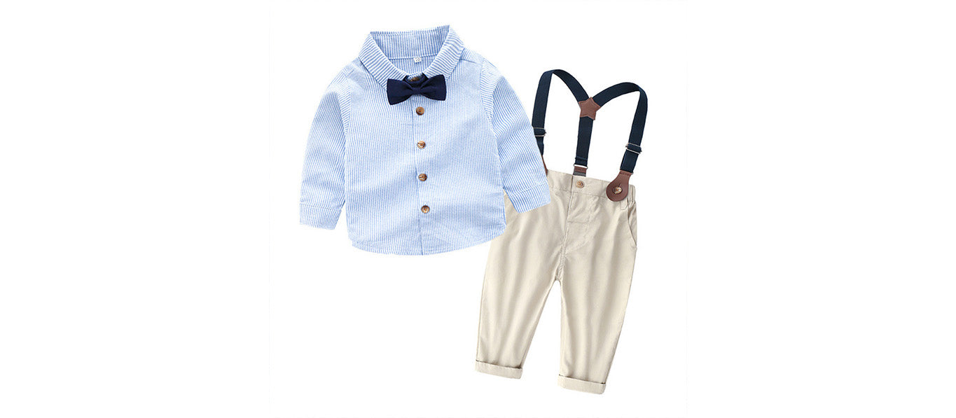 طقم ملابس صبي بدلة سهرة بأكمام طويلة بدلة رجالية بأزرار وقميص بأزرار وبنطال بحمالة