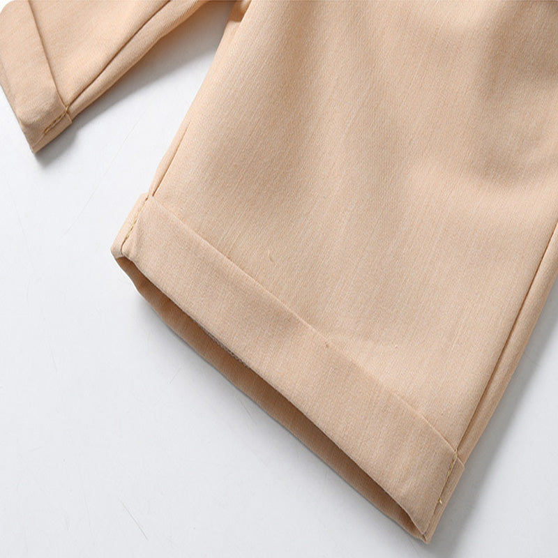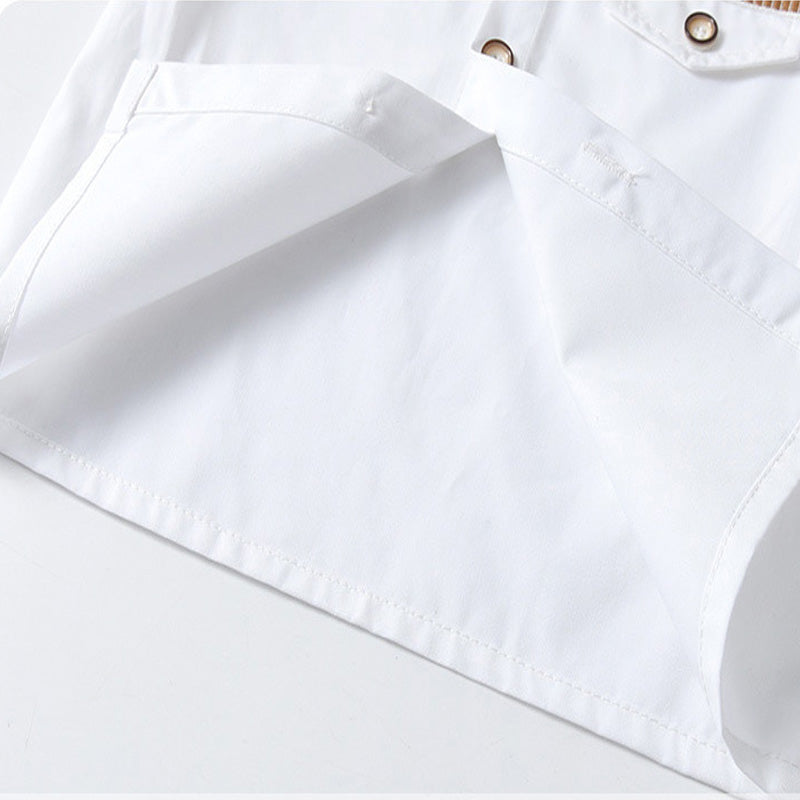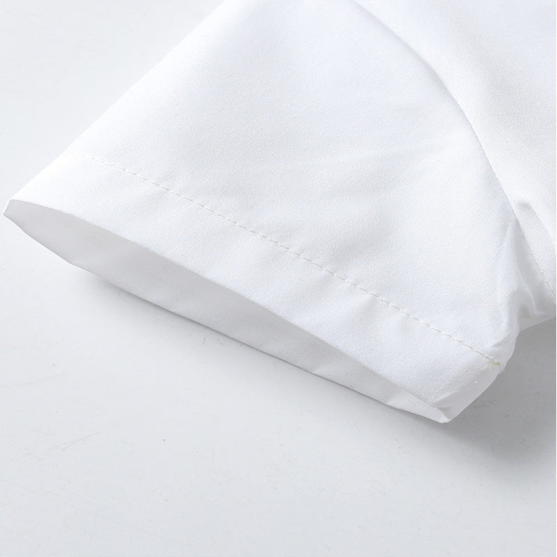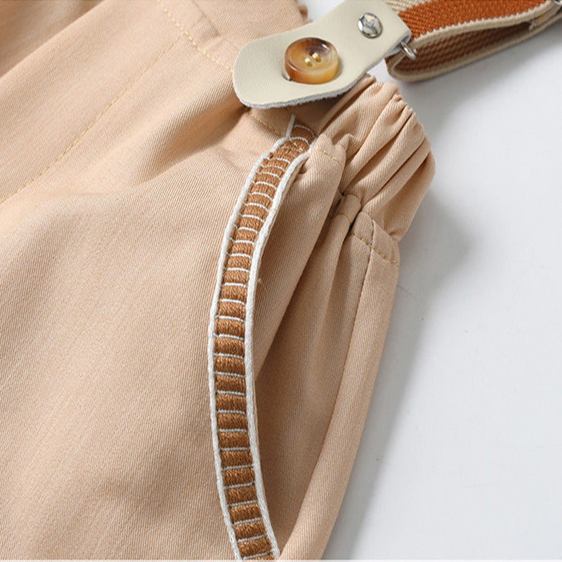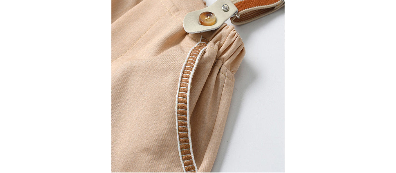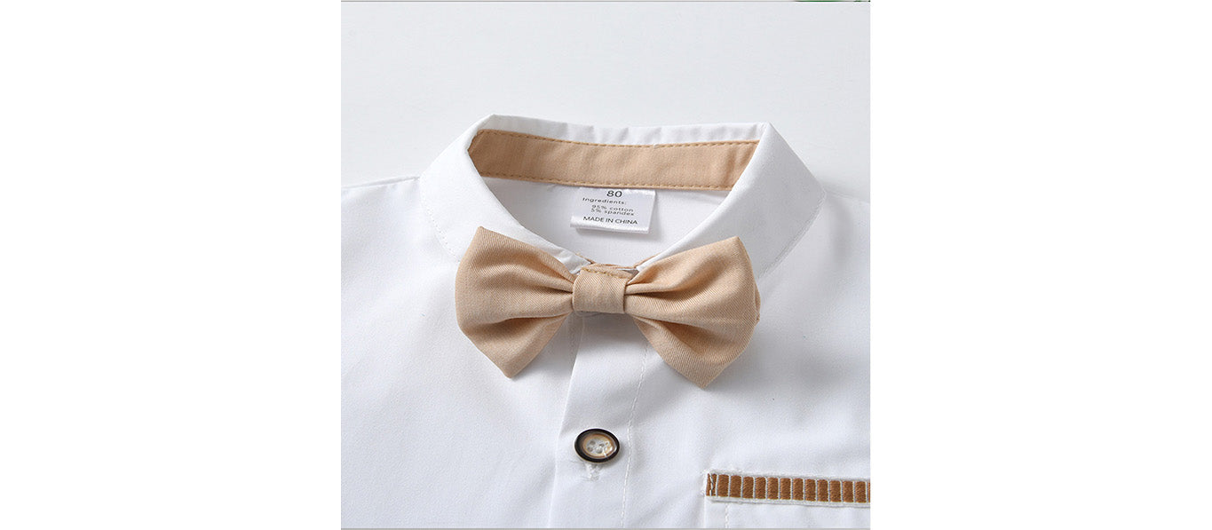 طقم رسمي صيفي مصمم خصيصًا للشباب، يتألف من قميص قصير الأكمام وربطة عنق وحمالات، مصنوع ليمنح مظهرًا أنيقًا ومريحًا في آن واحد.