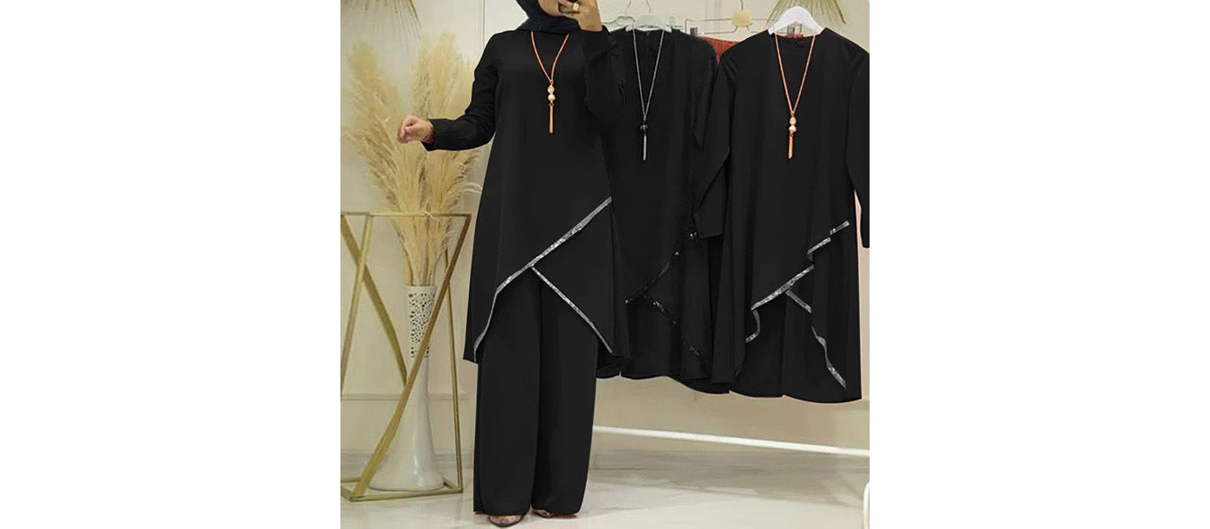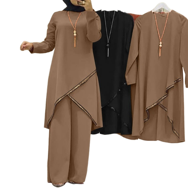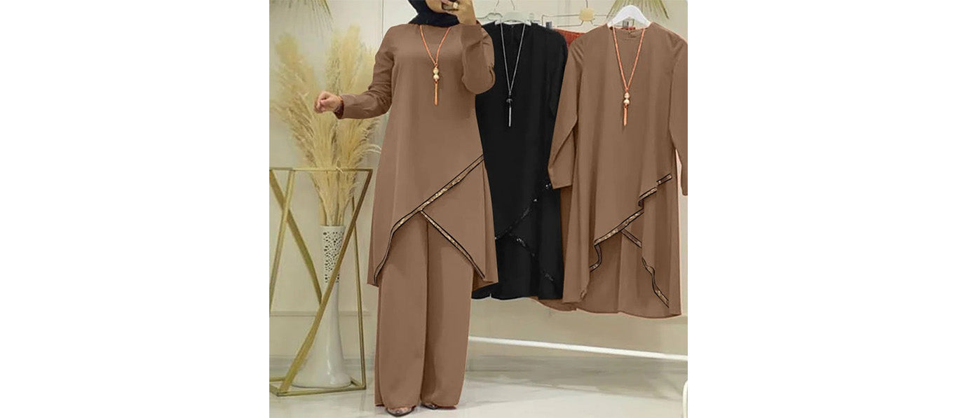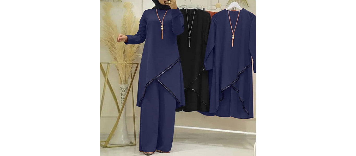 هذا الطقم الإسلامي المكون من قطعتين للنساء يمزج بشكل مثالي بين الأناقة والتواضع.