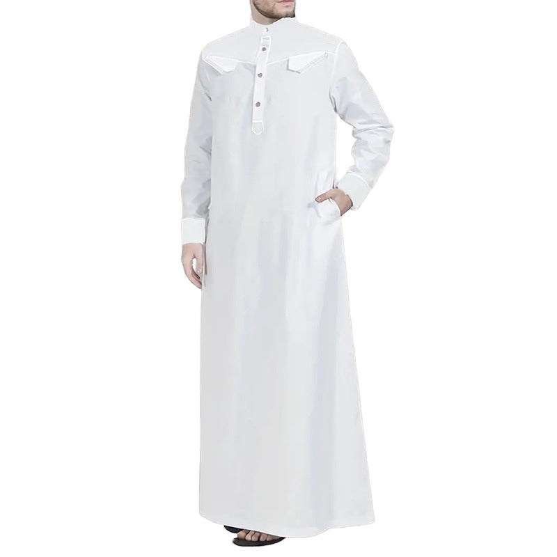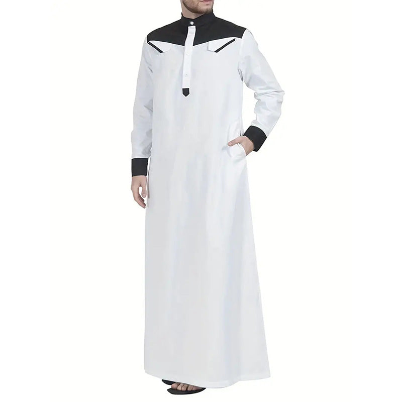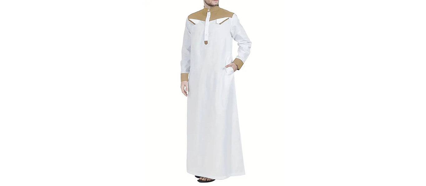 يتميز هذا الرداء الرجالي الشرق أوسطي بتصميم تقليدي يذكرنا بالطابع العربي، وهو مصنوع باللون الأبيض النقي لإطلالة بسيطة وأنيقة في آن واحد.
