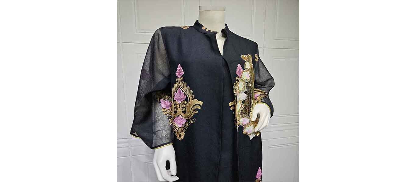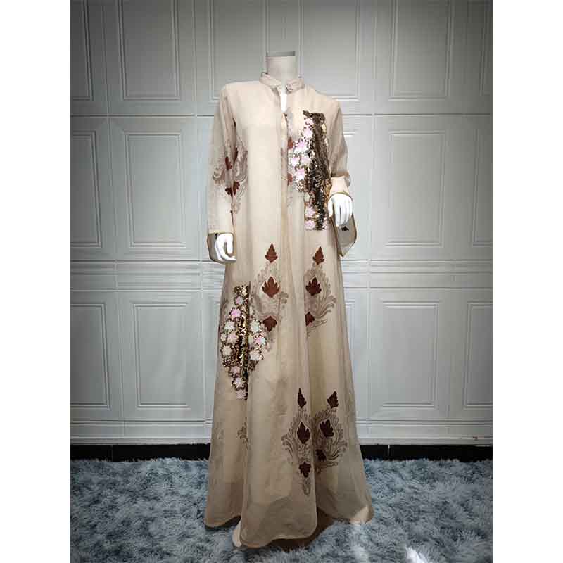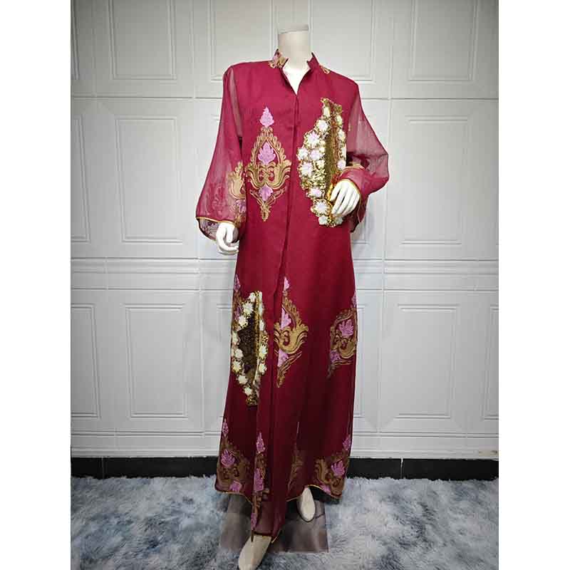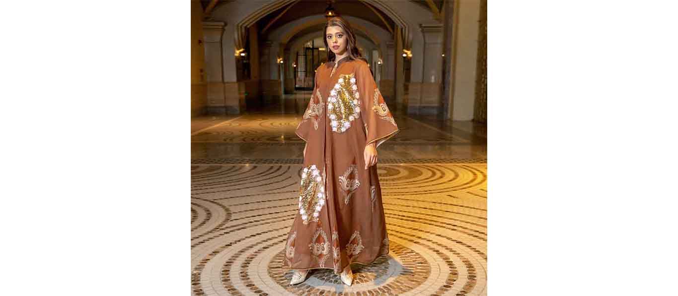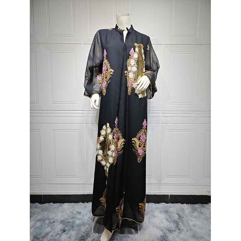 فساتين سهرة نسائية مسلمة فساتين سهرة نسائية مطرزة بالترتر بأكمام طويلة على شكل V