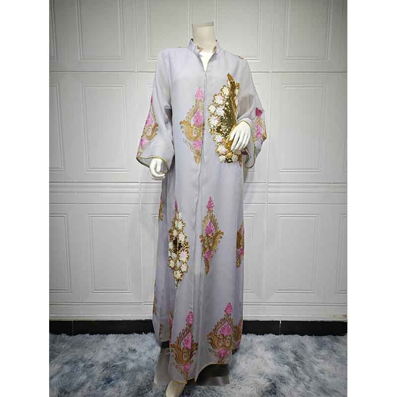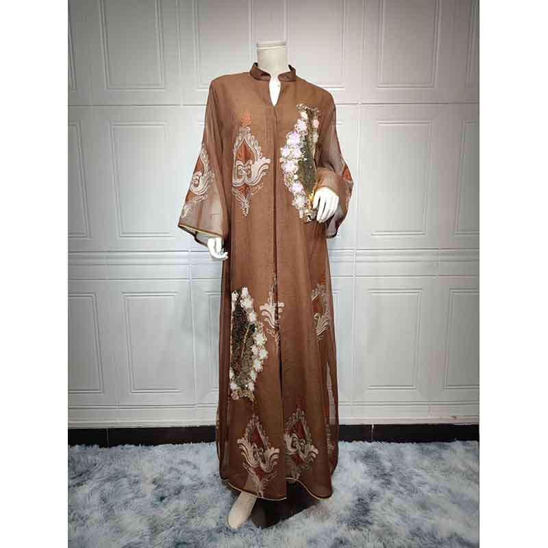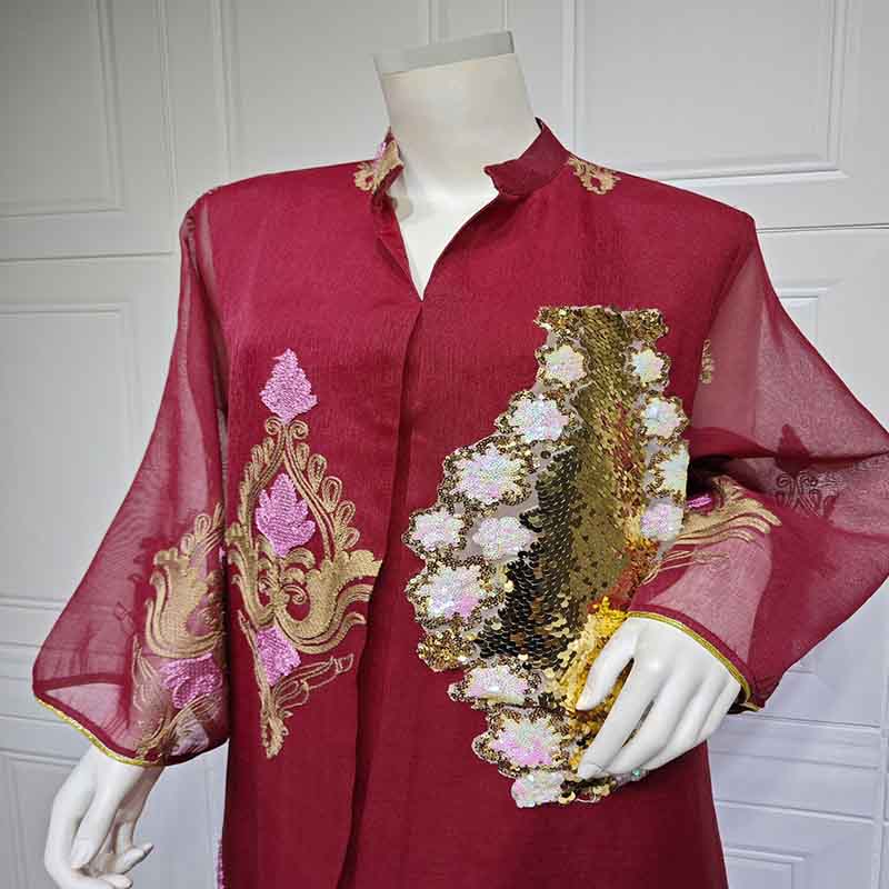 رداء قفطان نسائي بسيط لامع مع شق جانبي