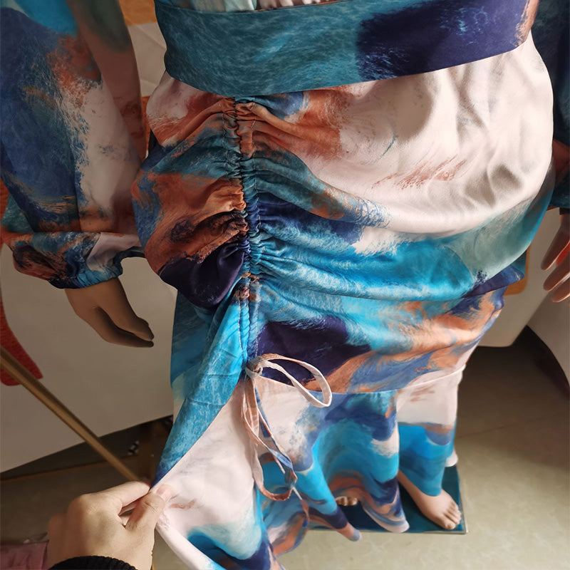 فساتين ماكسي للنساء كاجوال بأكمام طويلة مطبوعة بالألوان