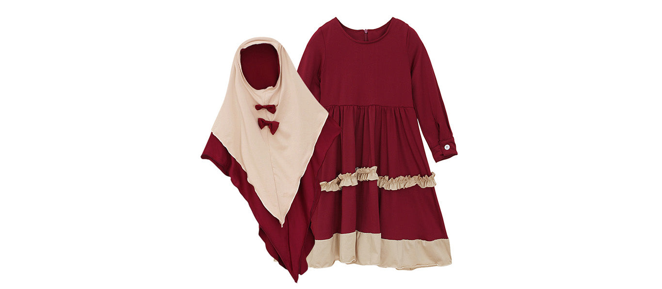 ملابس إسلامية طويلة الأكمام للفتيات: فستان قطني أنيق