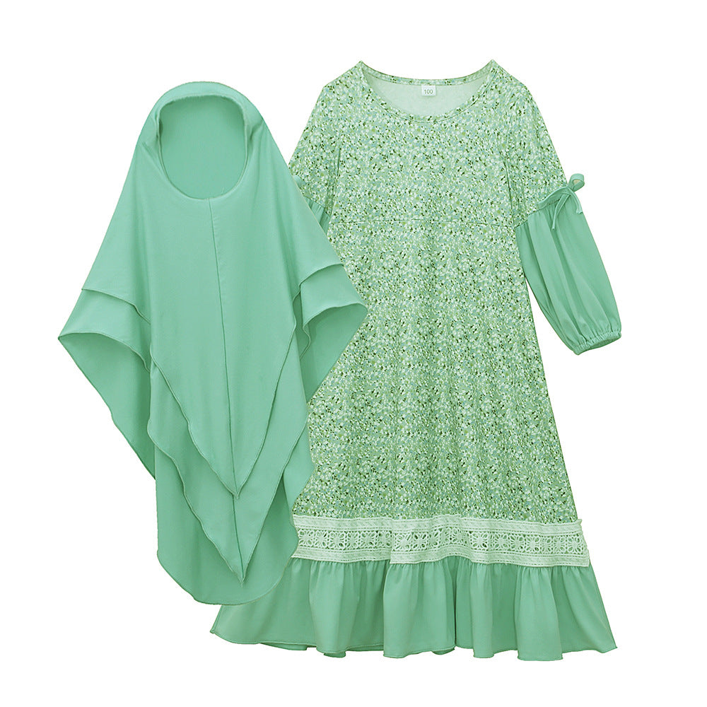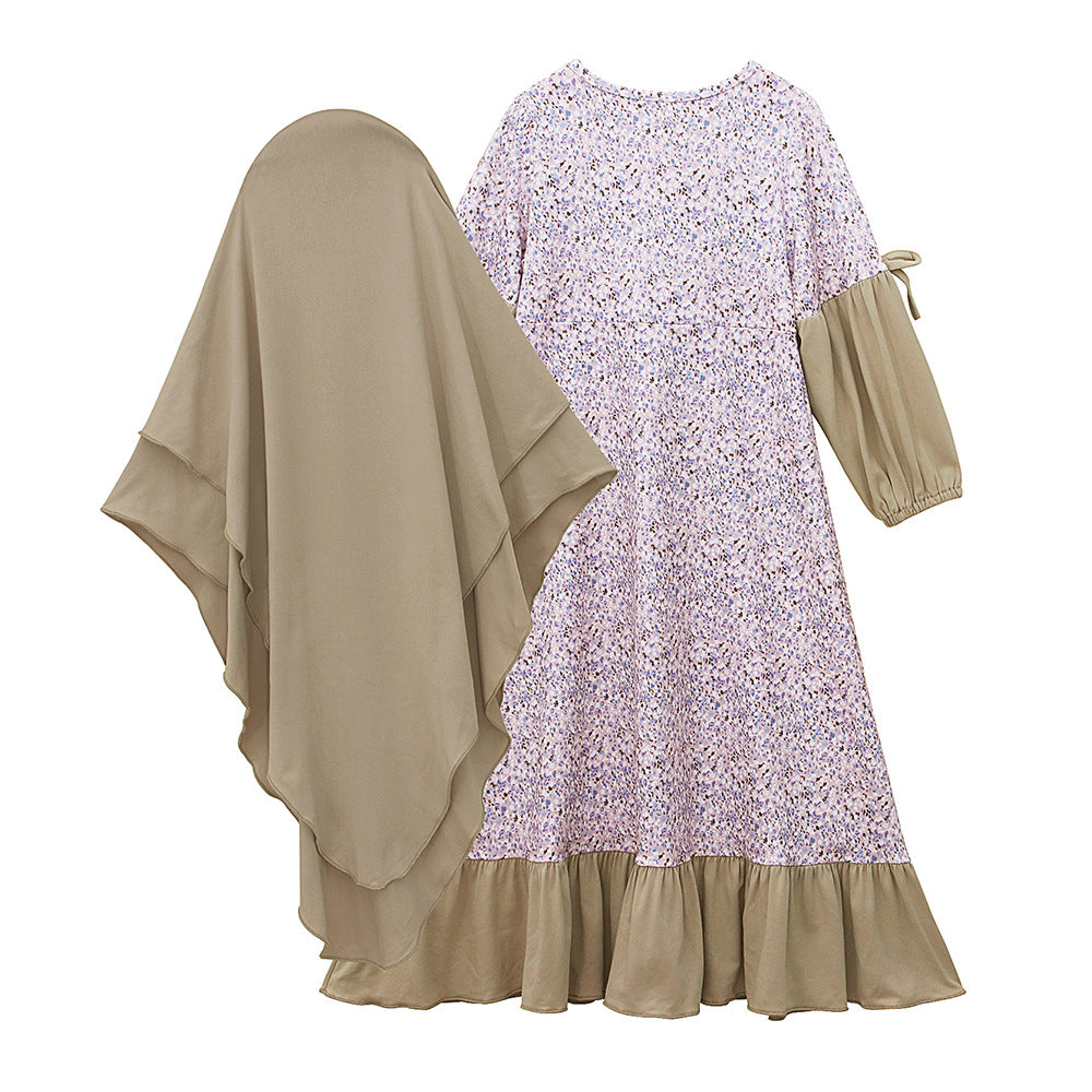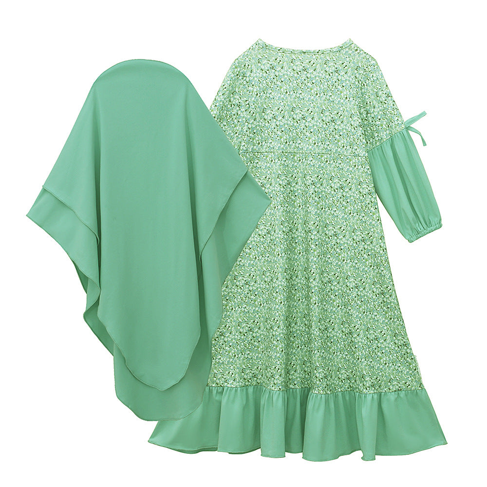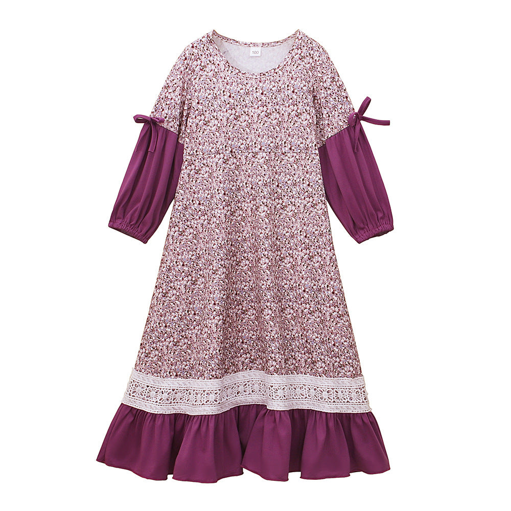 فستان طويل الأكمام للفتيات بياقة مستديرة