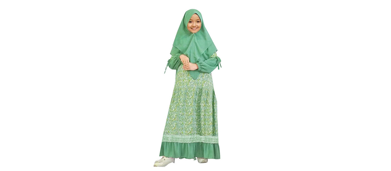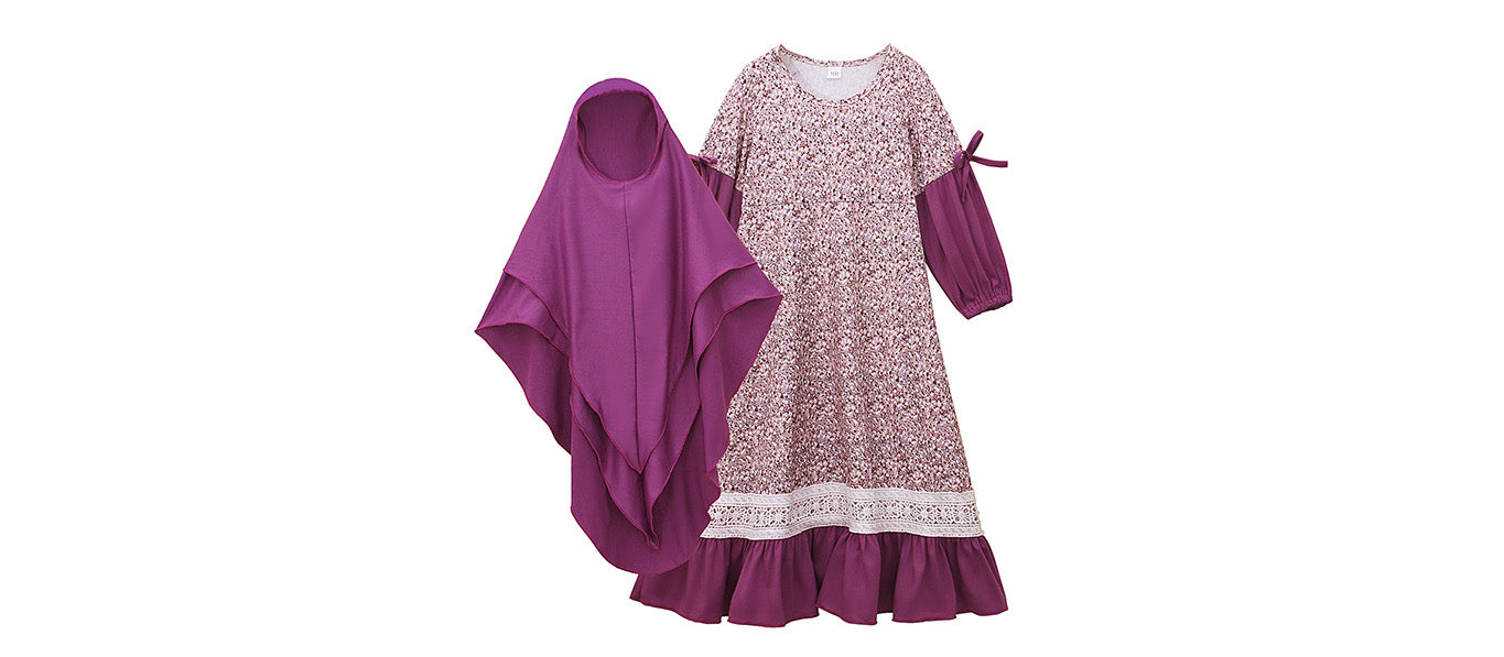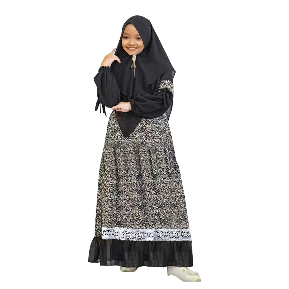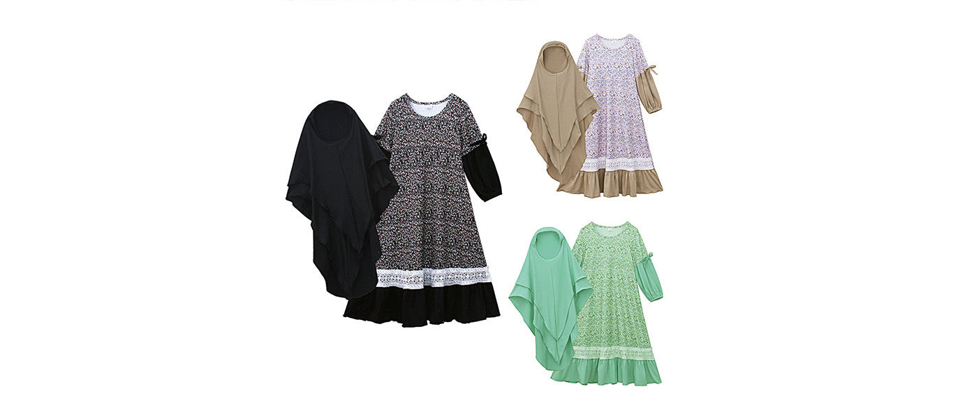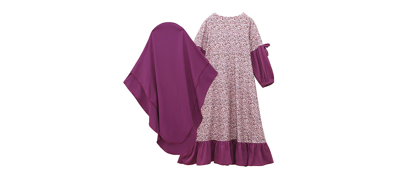 فستان طويل الأكمام للفتيات بياقة مستديرة