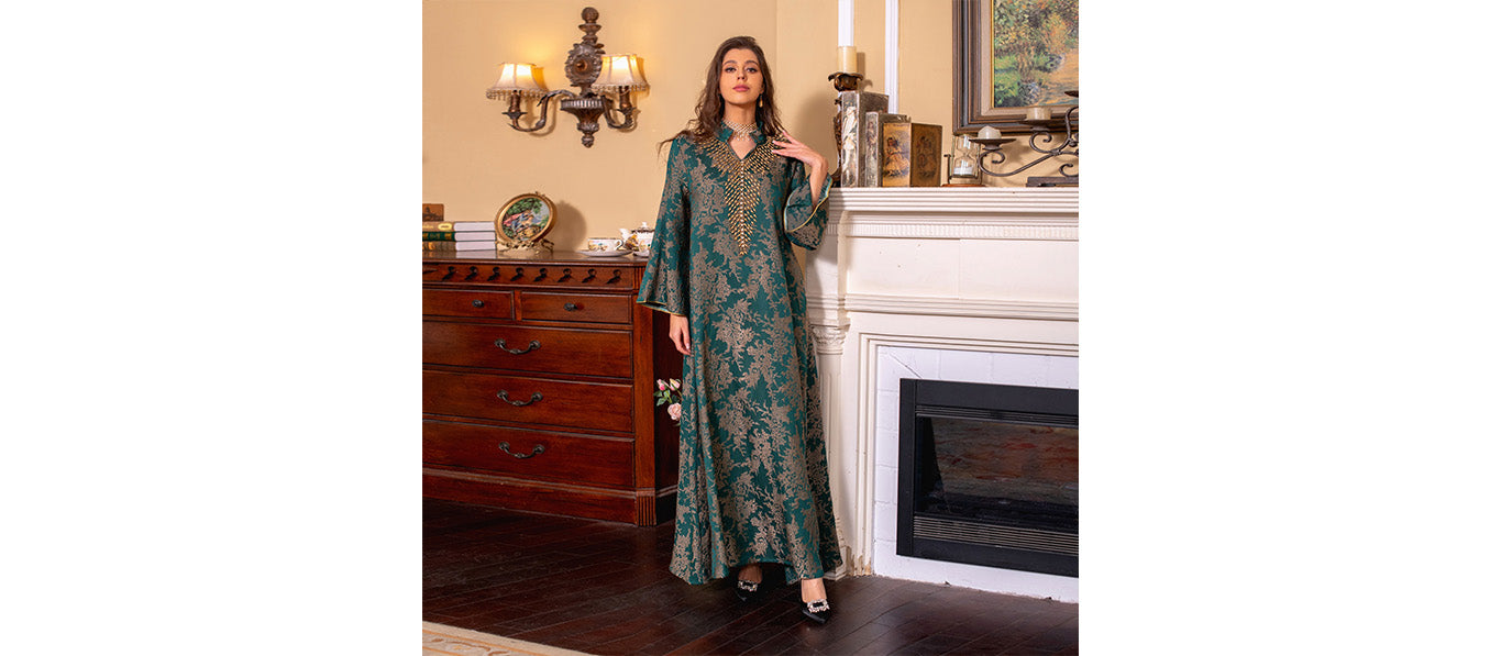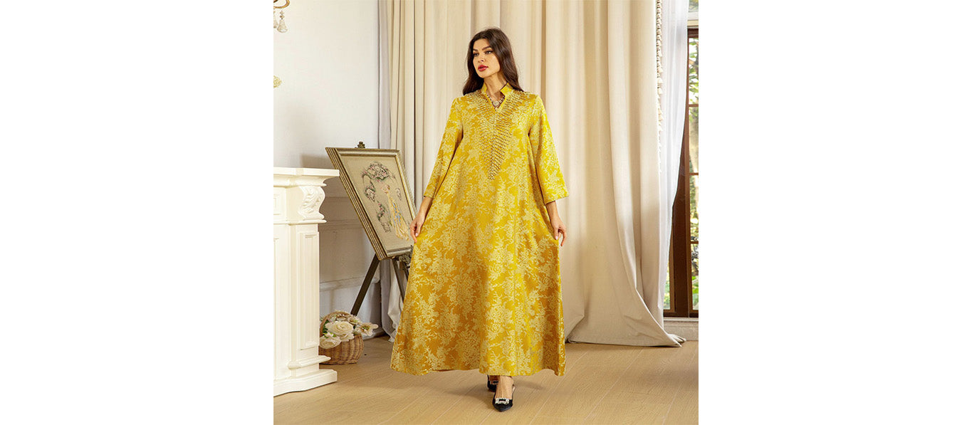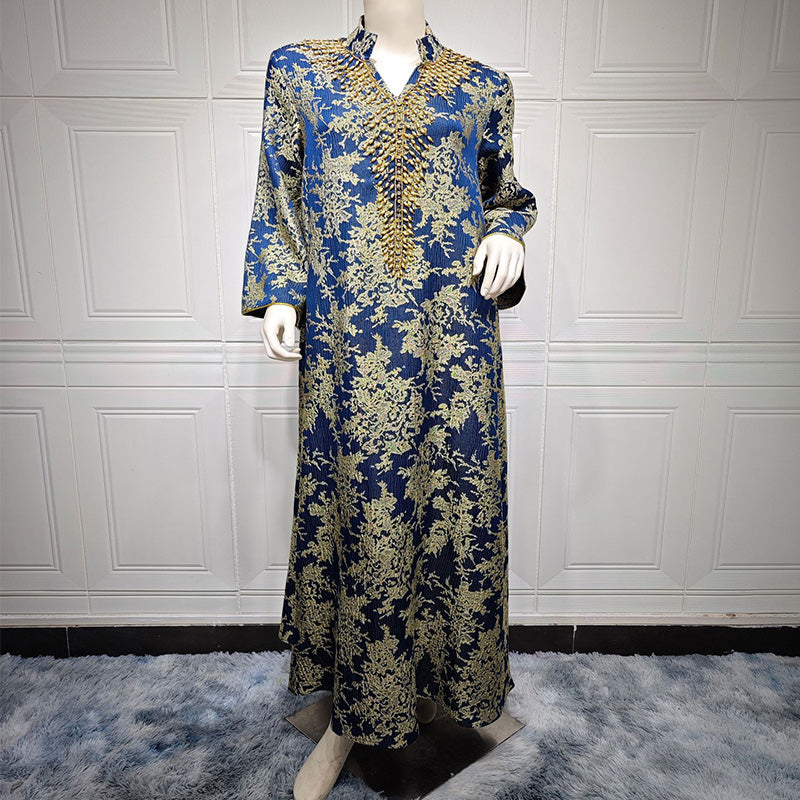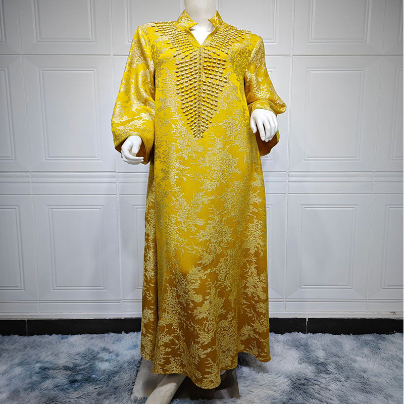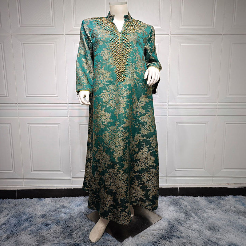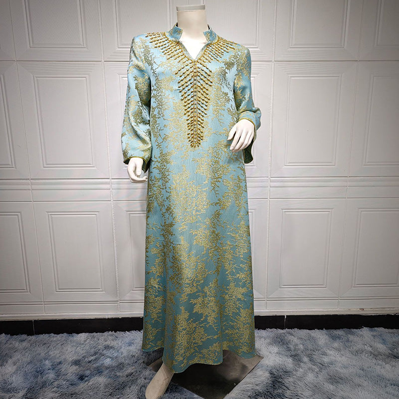 فستان سهرة نسائي جلابية موضة جلابية بأكمام طويلة مطرزة بالخرز