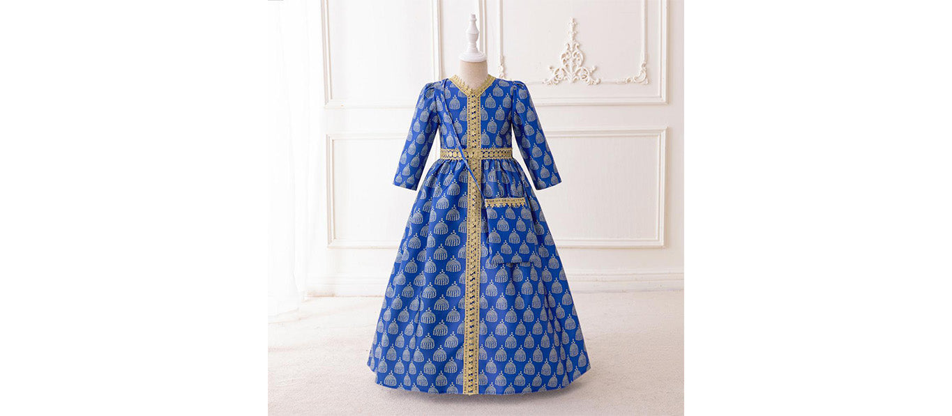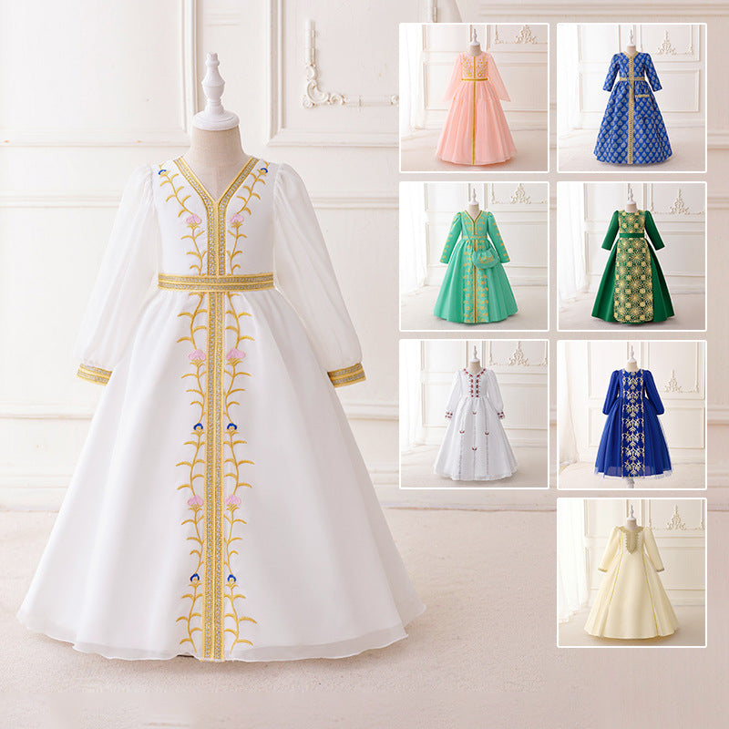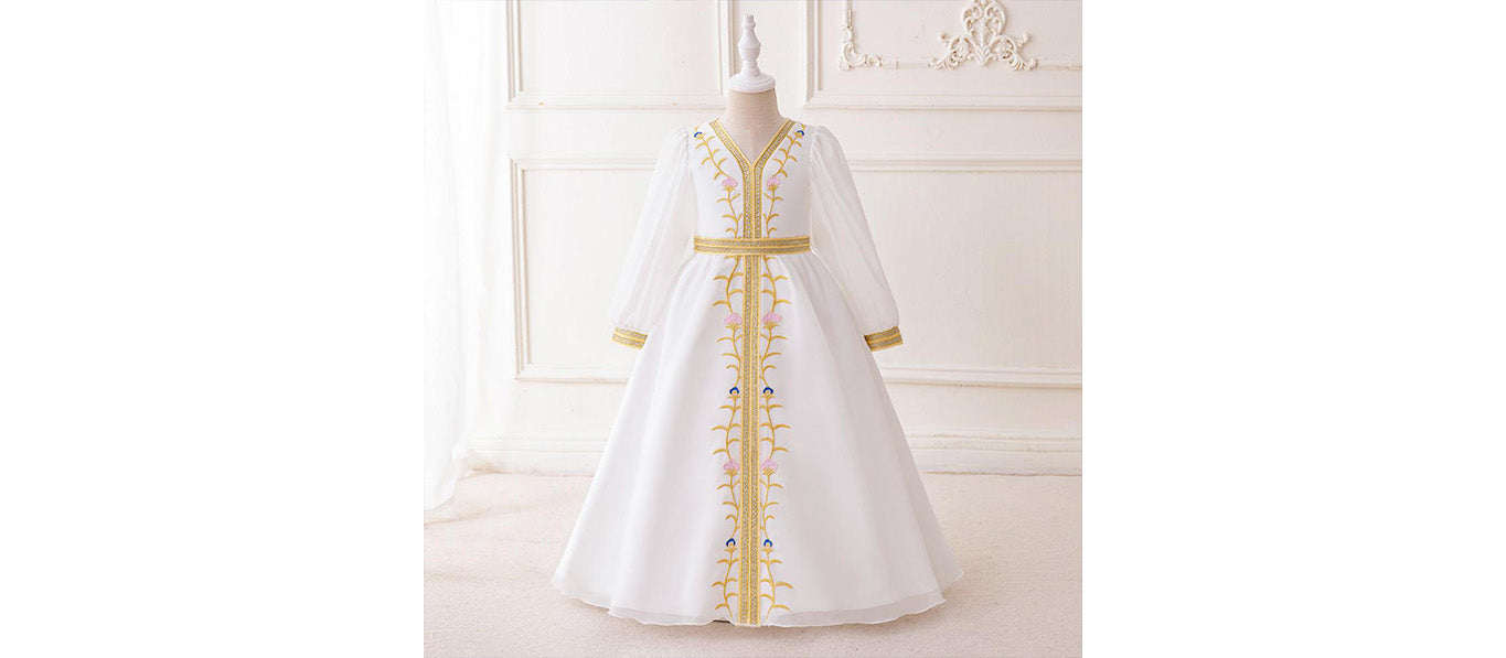 فستان رسمي مطرز على الطراز العربي بأكمام طويلة للفتيات