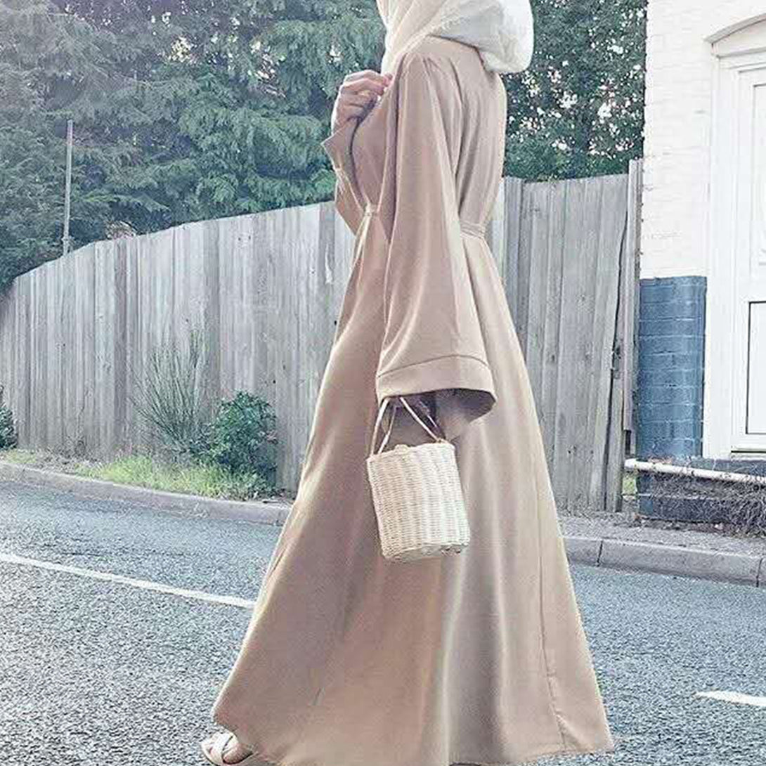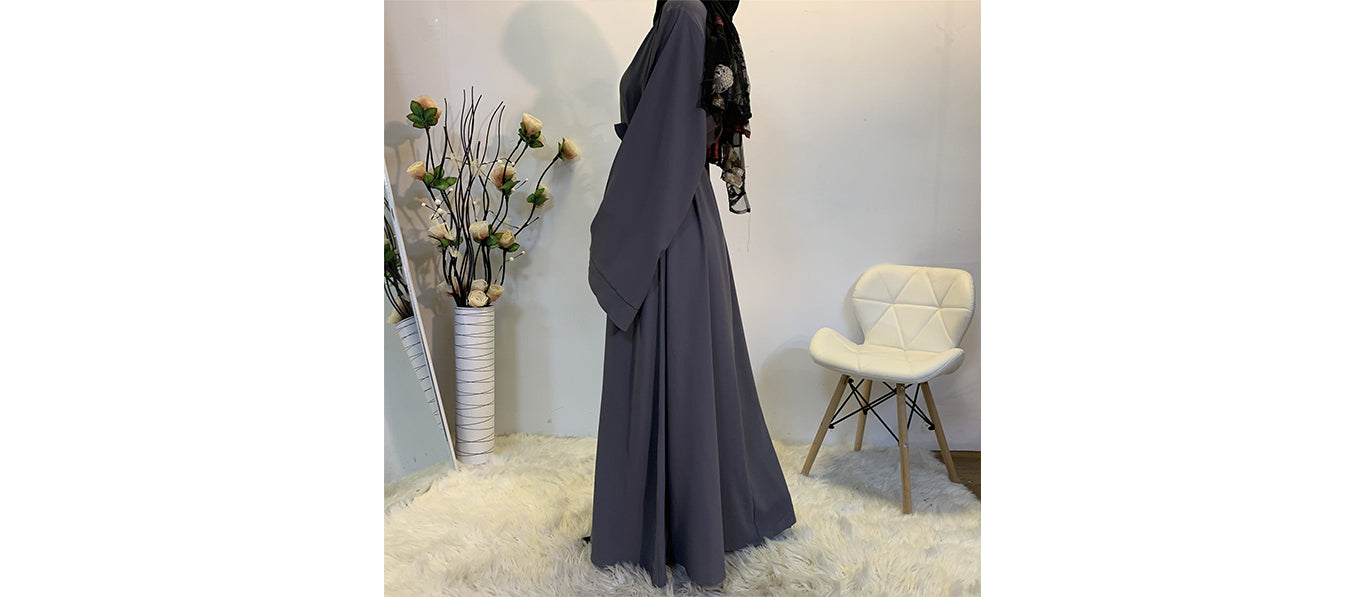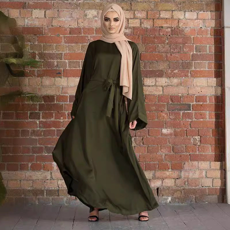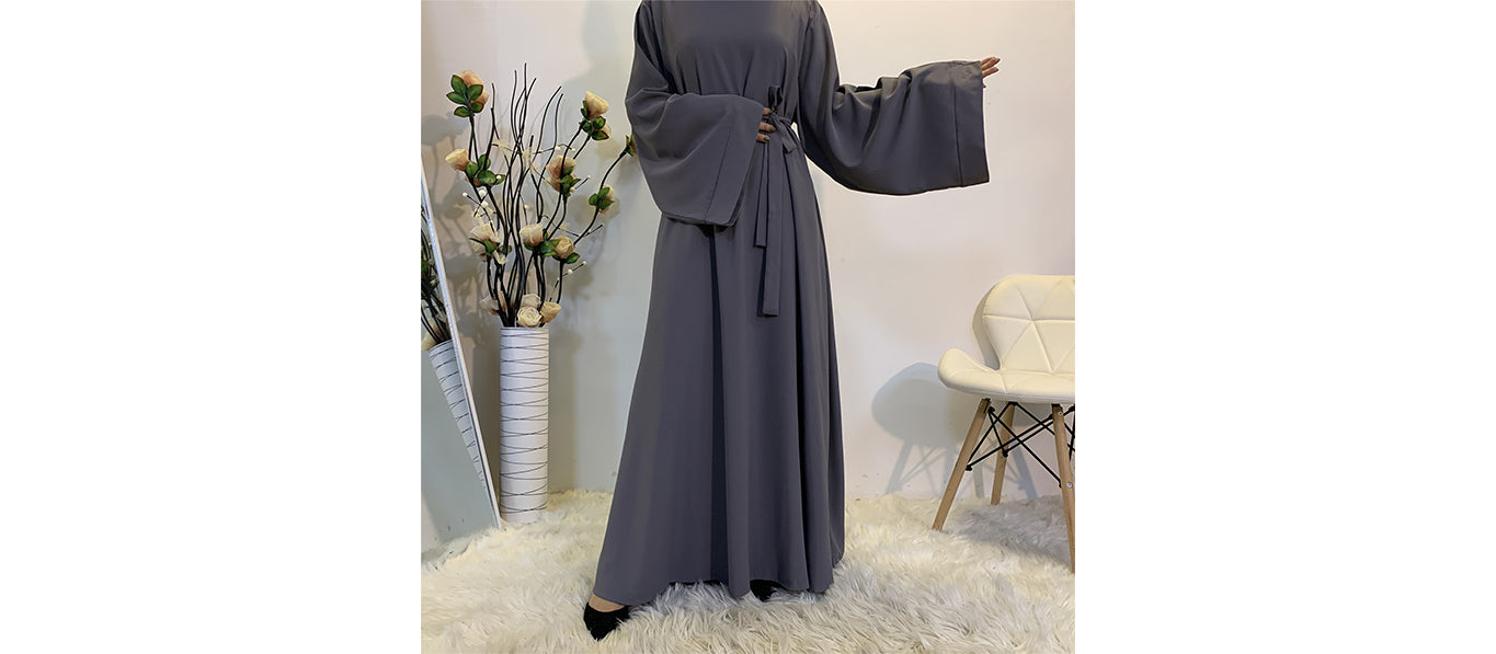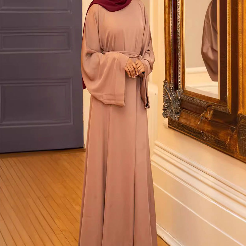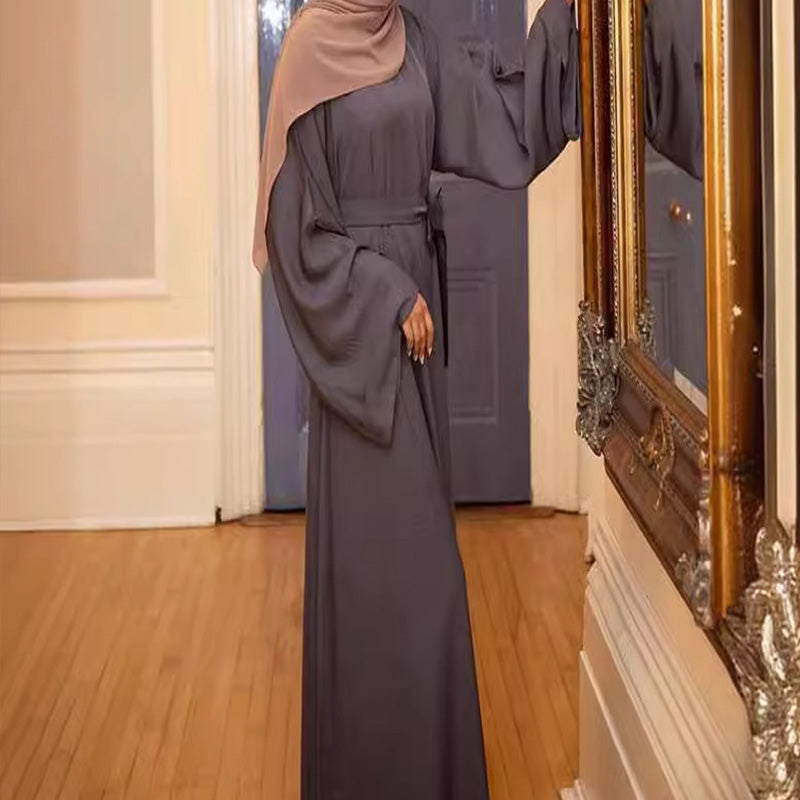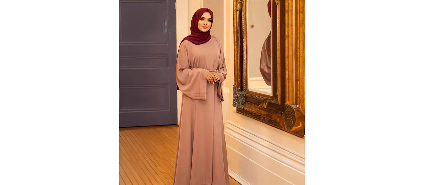 فستان إسلامي طويل للنساء، من الشيفون مع حزام