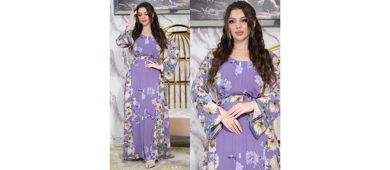 فستان غير رسمي مستوحى من الطراز البوهيمي يجمع بين الأناقة والراحة، ويتميز بياقة مستديرة تضفي عليه طابعًا عصريًا ناعمًا.