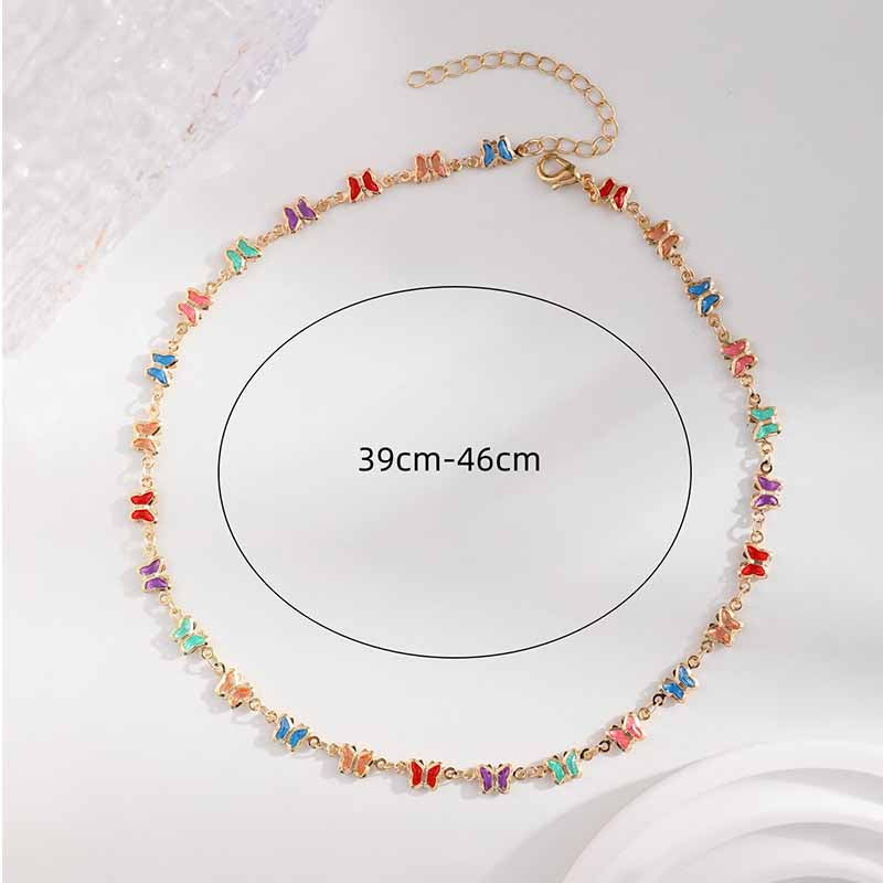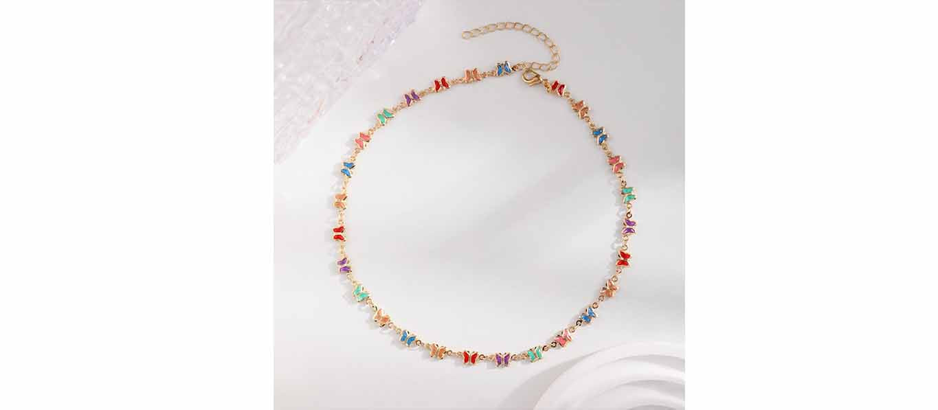 قلادة فراشة نسائية سلسلة قلادة ملونة