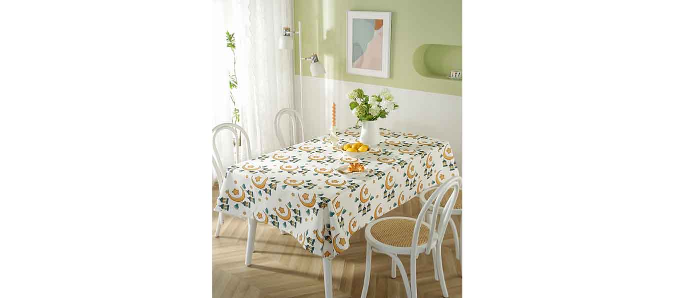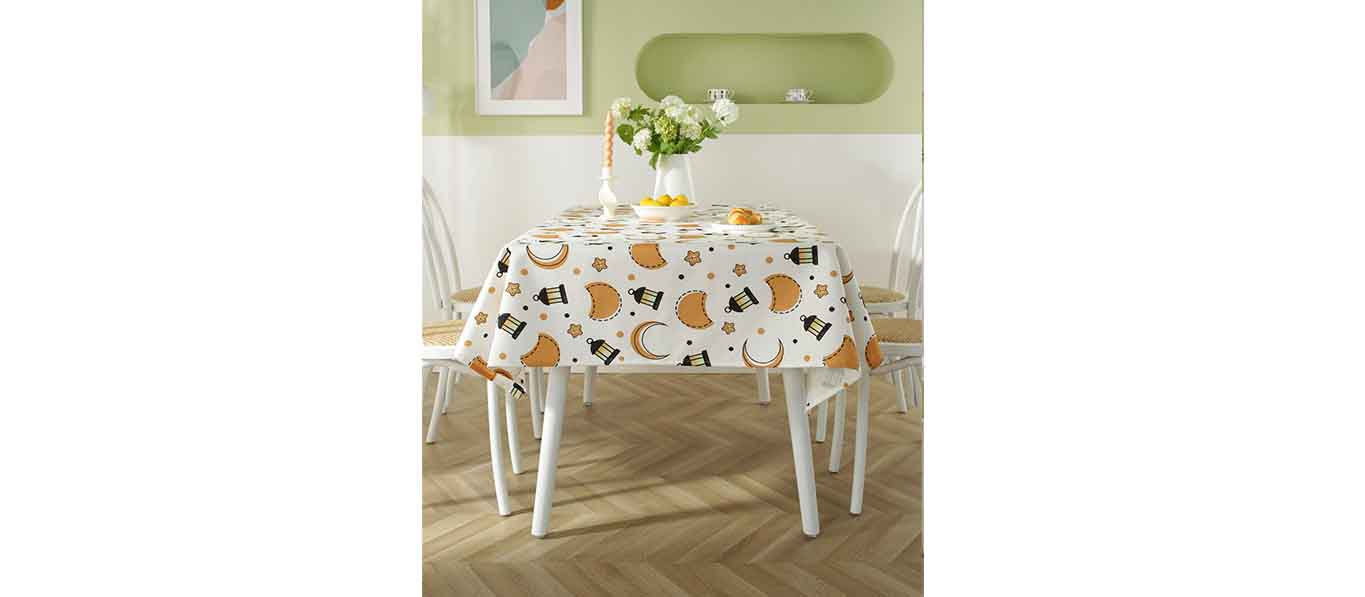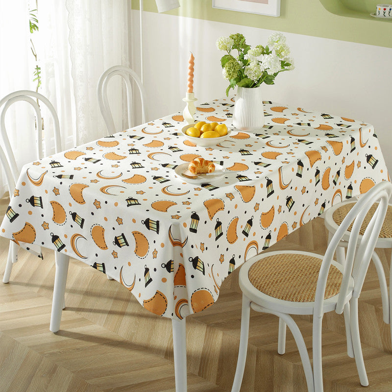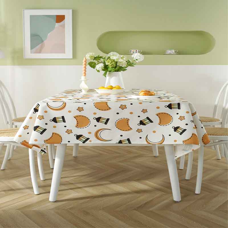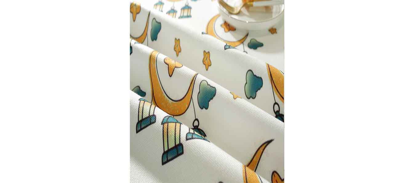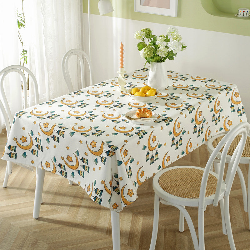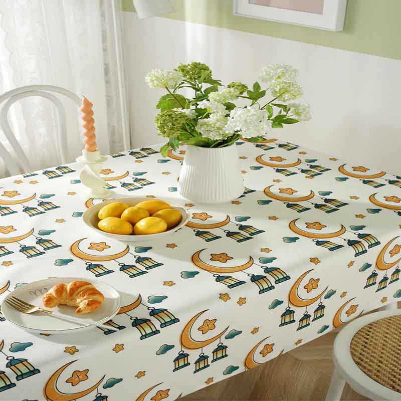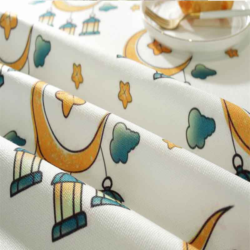قماش طاولة قهوة من البوليستر المطبوع عليه نجوم وقمر قماش طاولة طعام مقاوم للماء