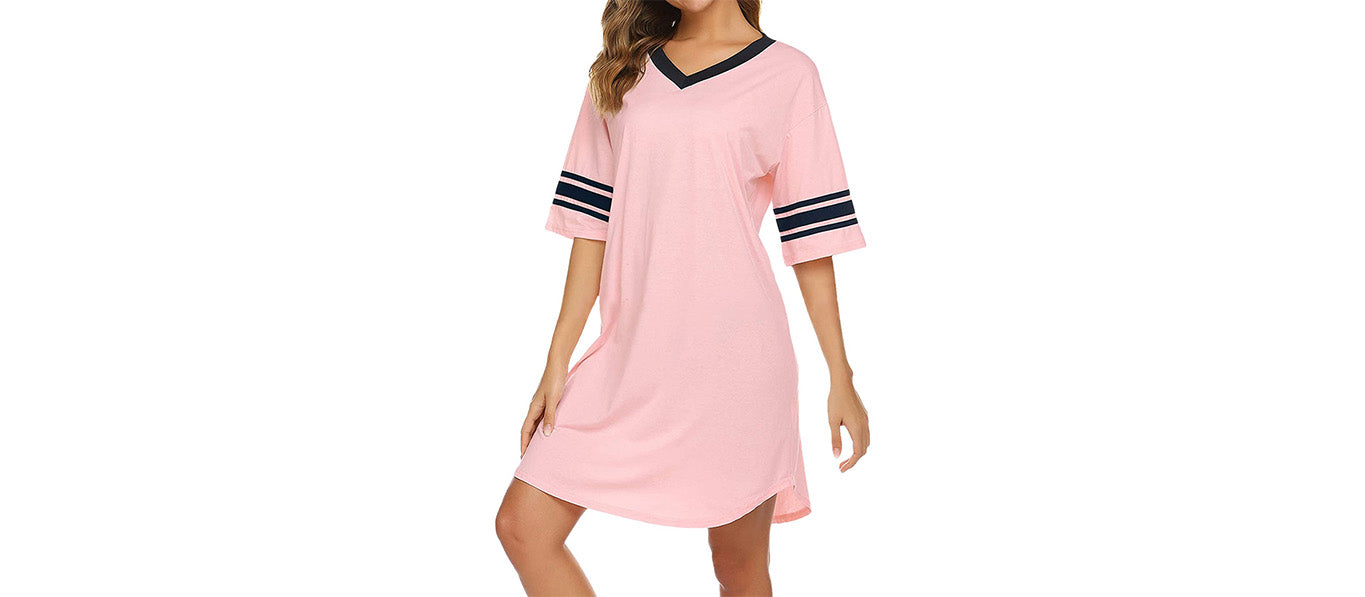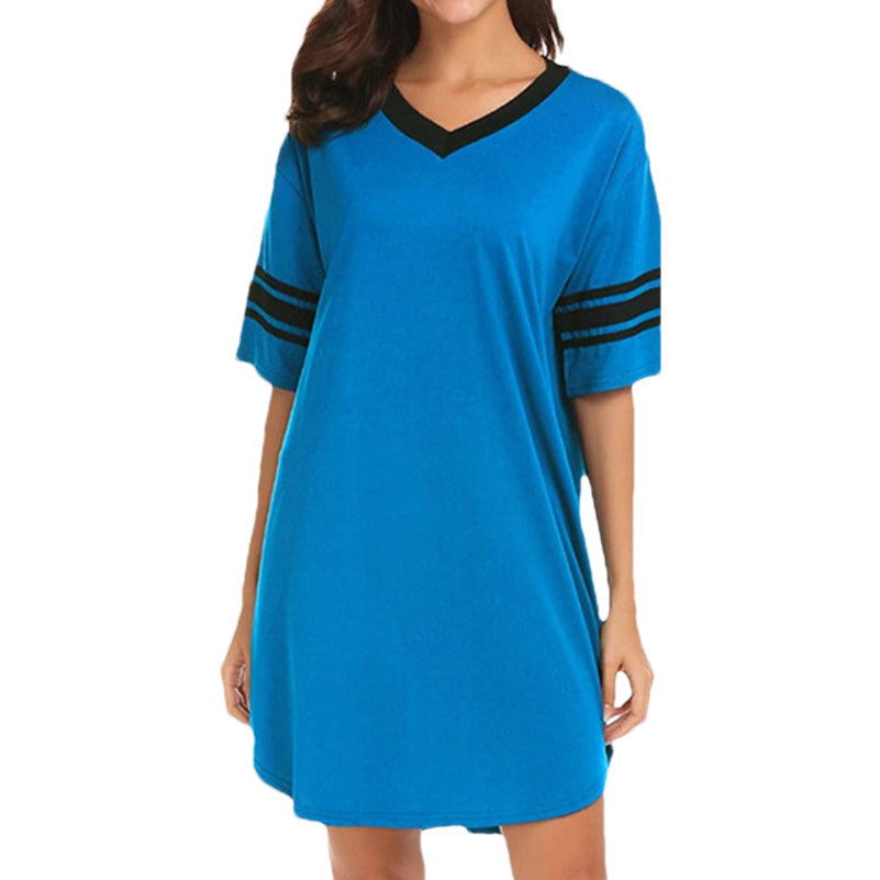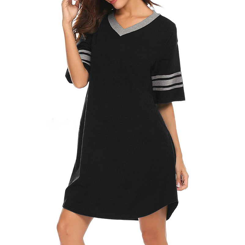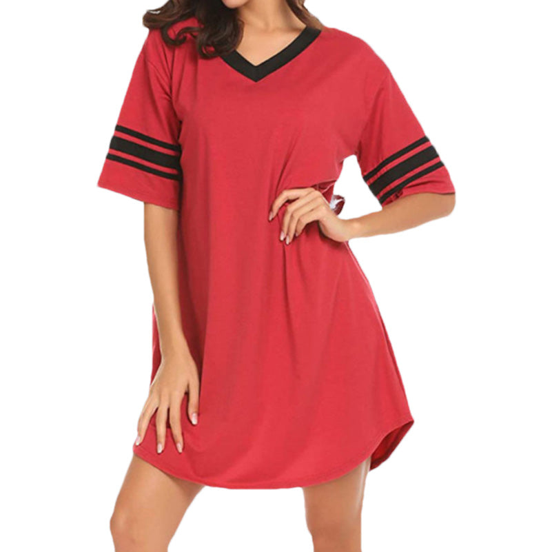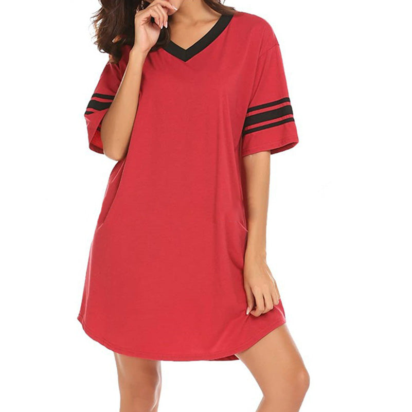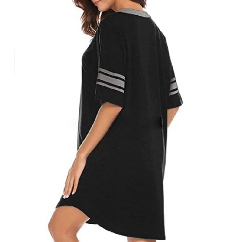 ثوب نوم نسائي برقبة على شكل V وأكمام قصيرة بقصّة مريحة وواسعة