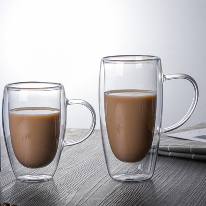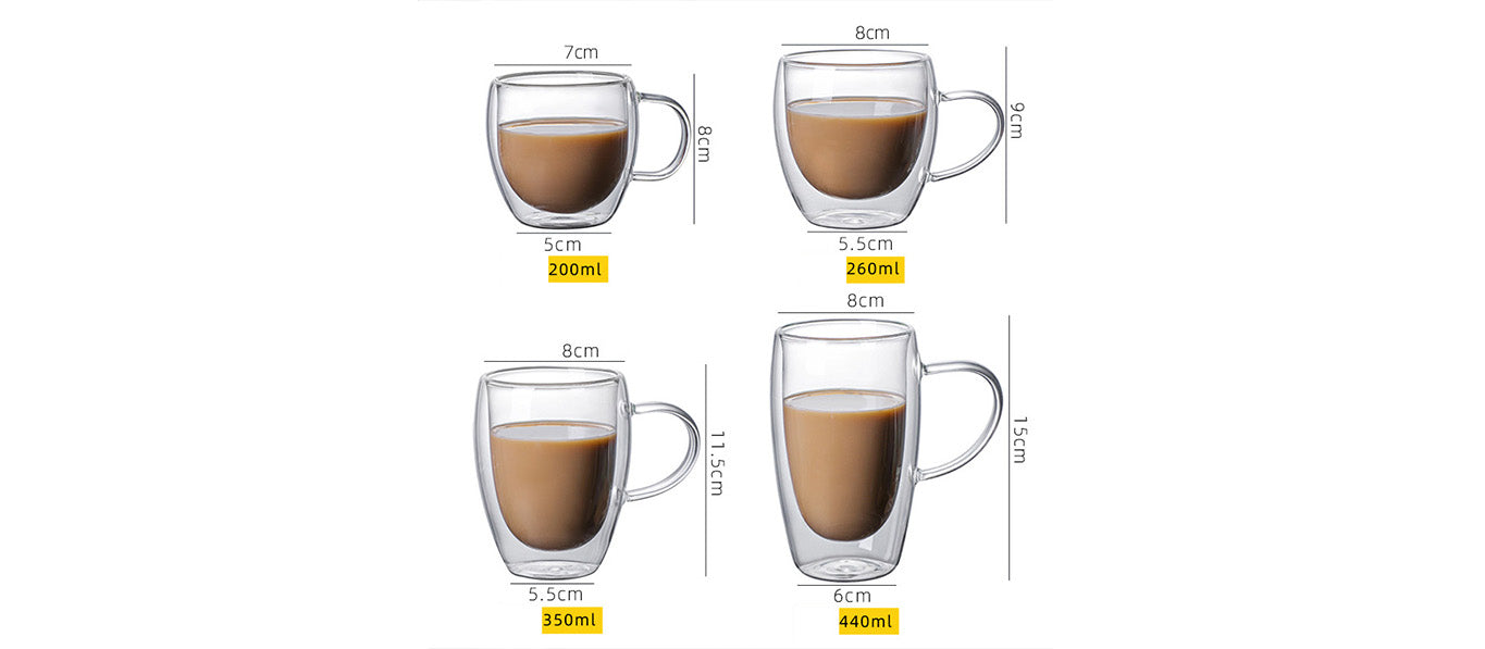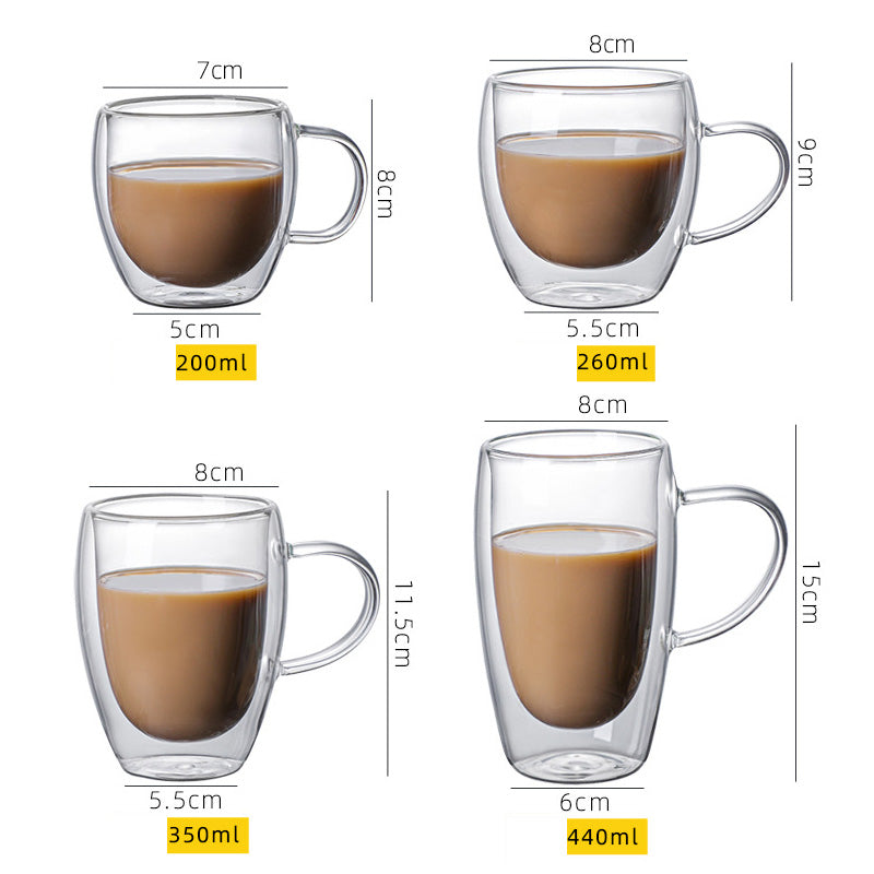كوب زجاجي عالي البورسليكات مزدوج الطبقة ومقاوم للحرارة