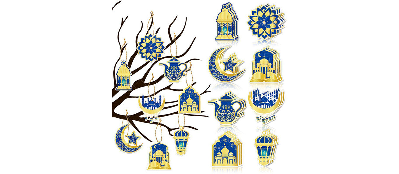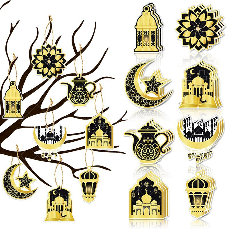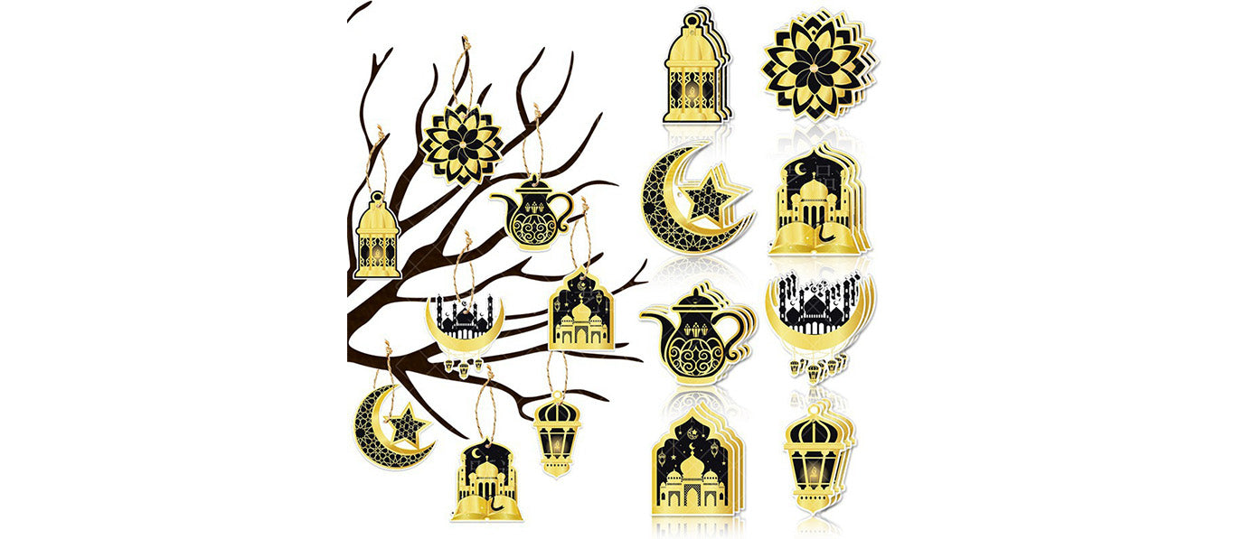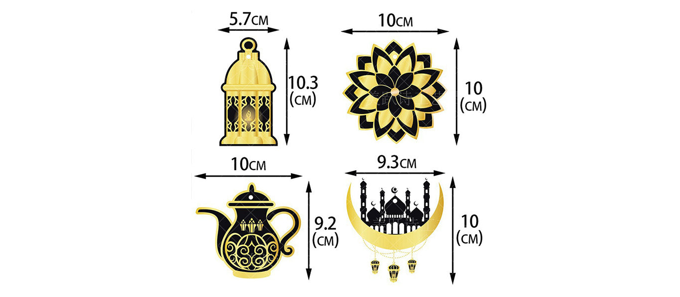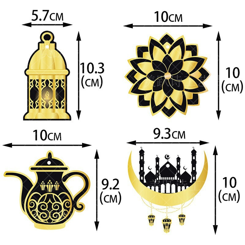 تضفي زينة عيد الفطر المبارك هذه لمسة أنيقة ومميزة على أجواء الاحتفال، حيث تأتي بتصميم نجمة ذهبية سوداء لامعة مستوحاة من فانوس القمر. مثالية لتعليقها في المنزل أو أماكن الاحتفال، تضيف رونقاً خاصاً يعكس روح العيد ويعزز الأجواء الاحتفالية بأسلوب راقٍ ومتقن.