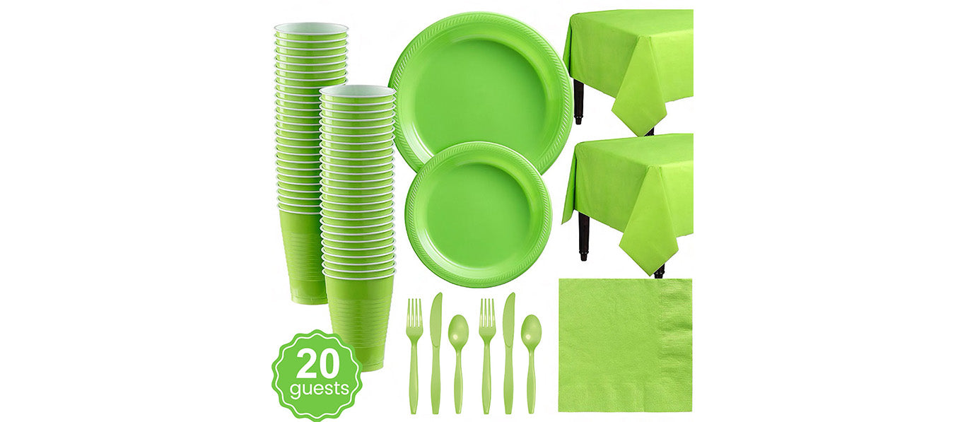 مجموعة أدوات مائدة بلاستيكية أحادية اللون للاستخدام مرة واحدة