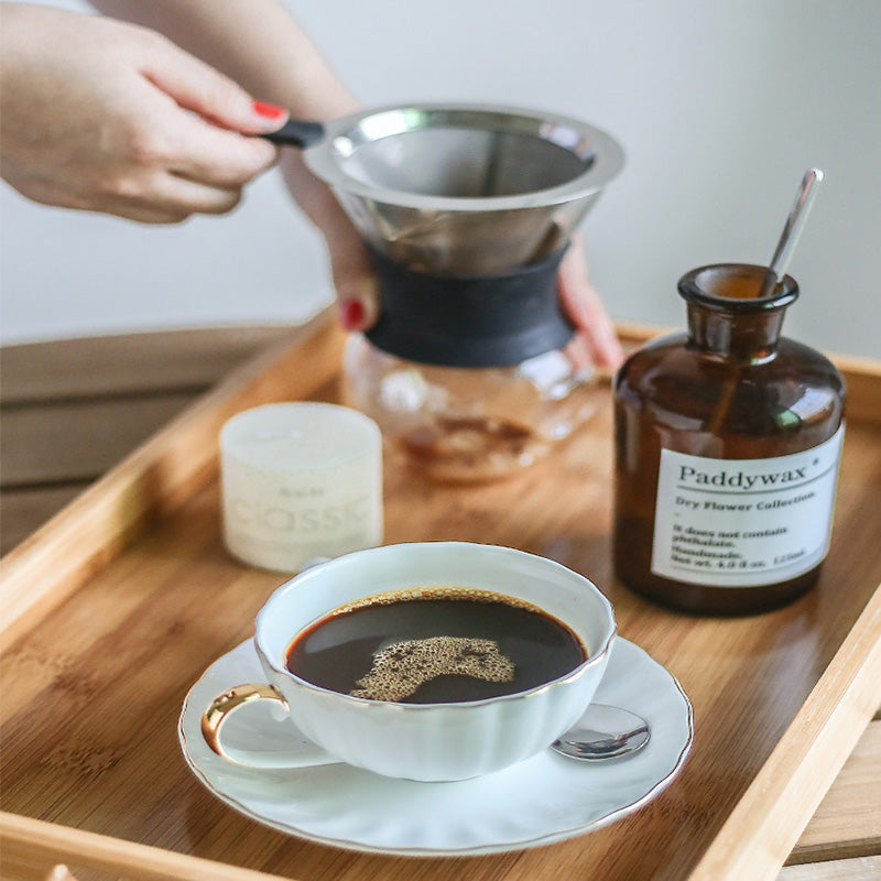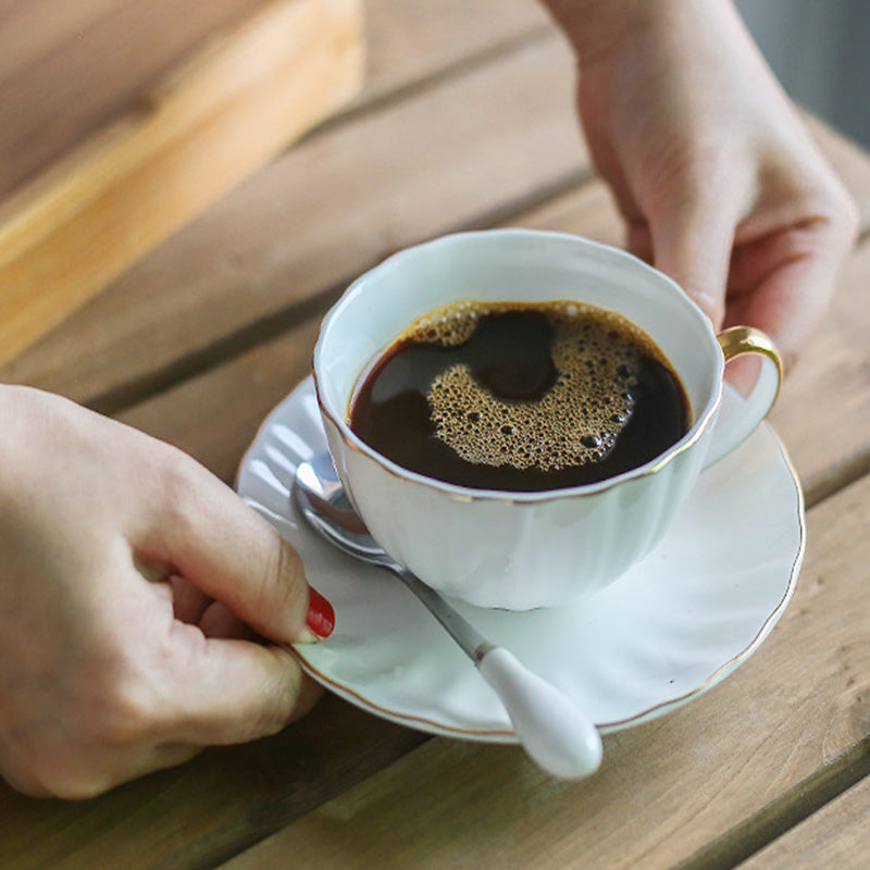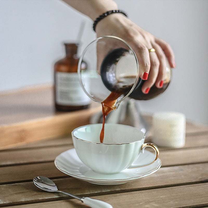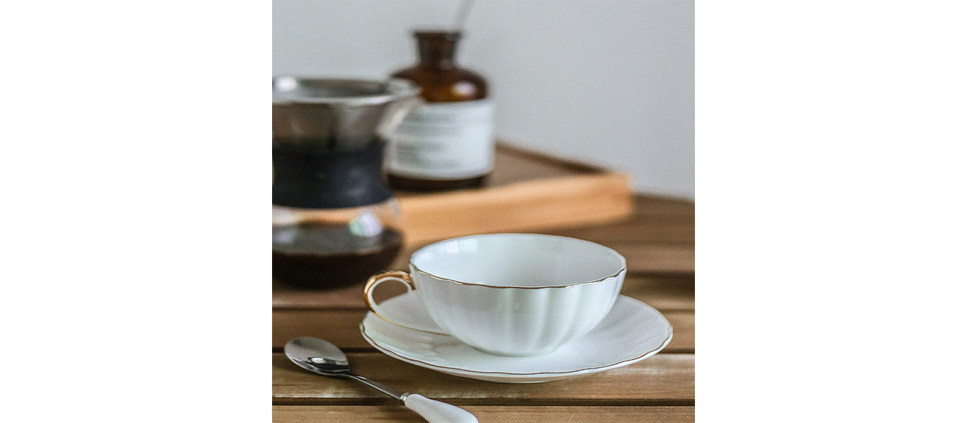 مجموعة أكواب قهوة خزفية مطلية باللون الذهبي