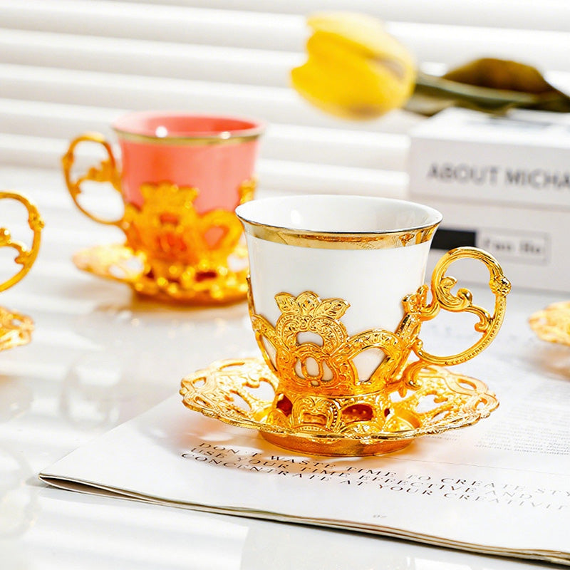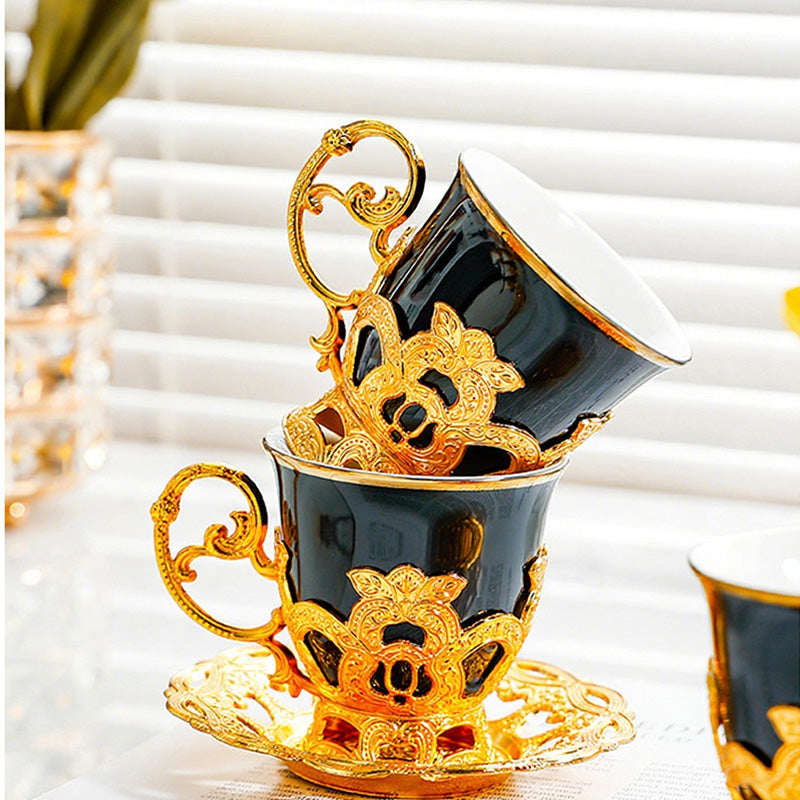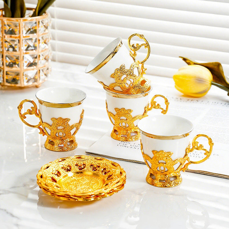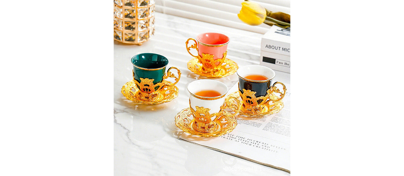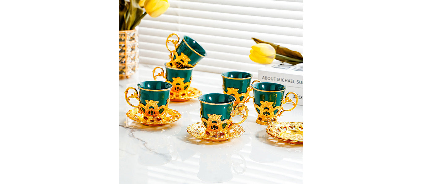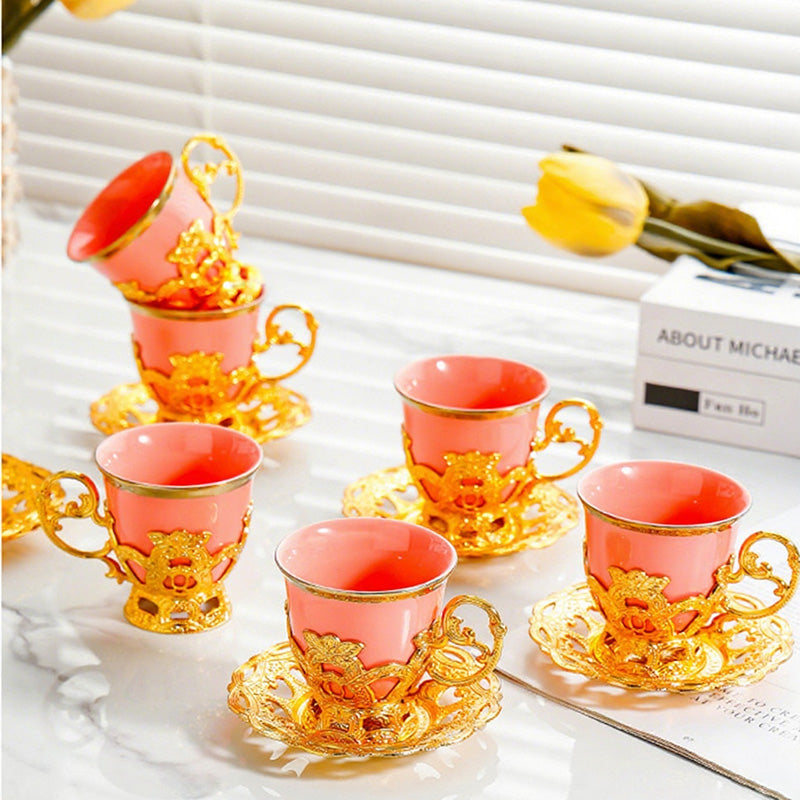 طقم فاخر من 6 قطع من الفخار يتكون كل طقم من فنجان وصحن