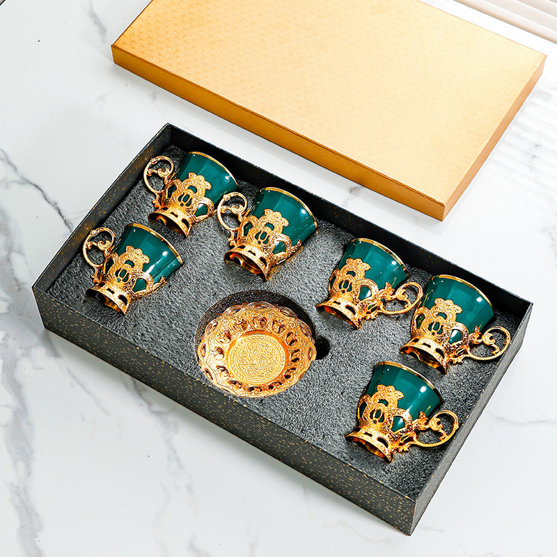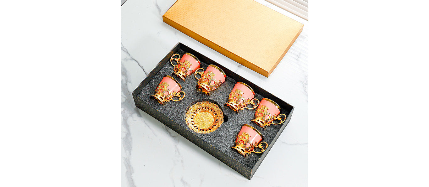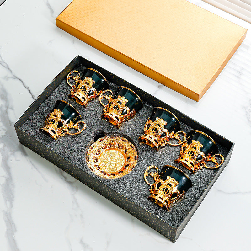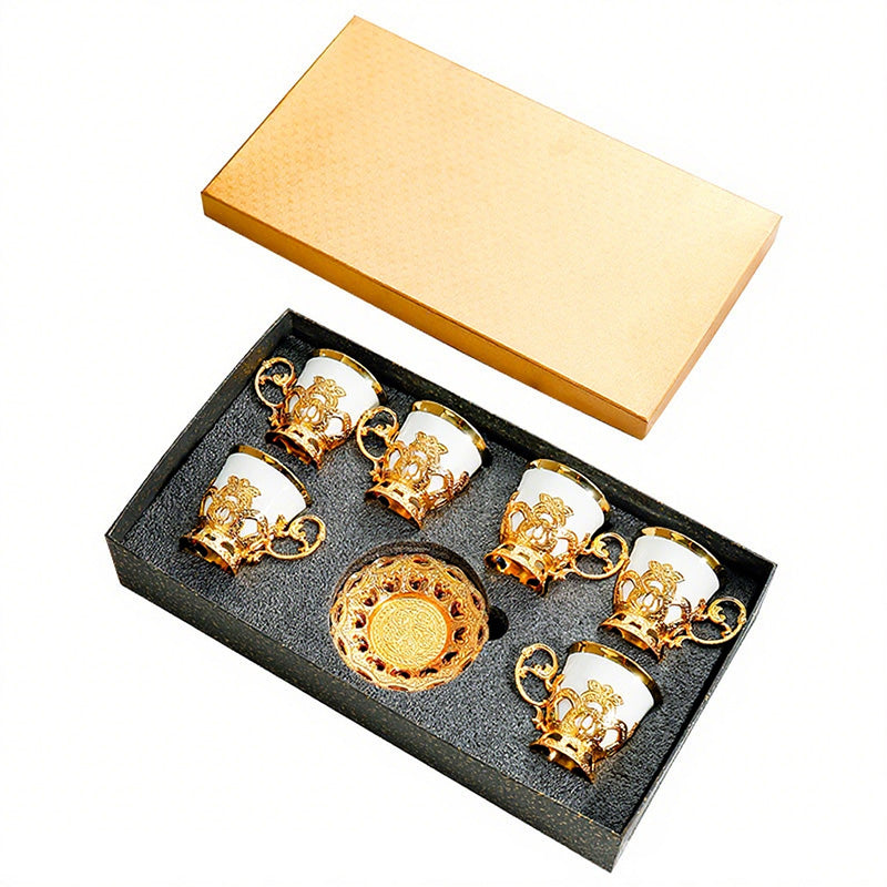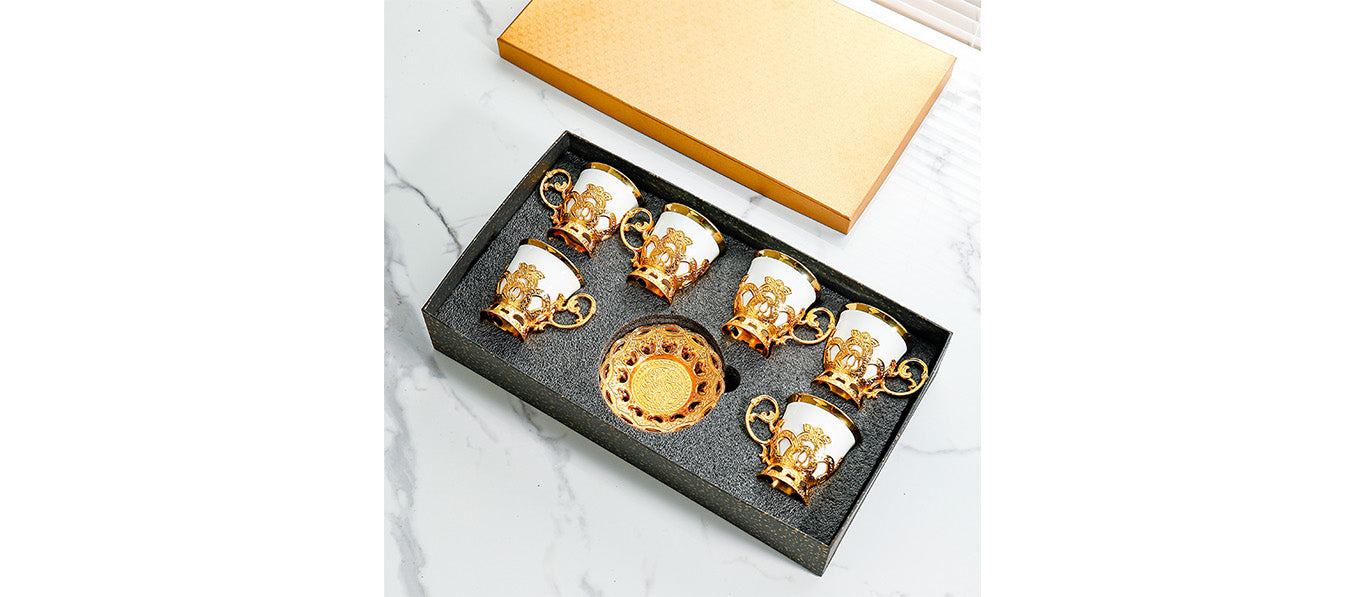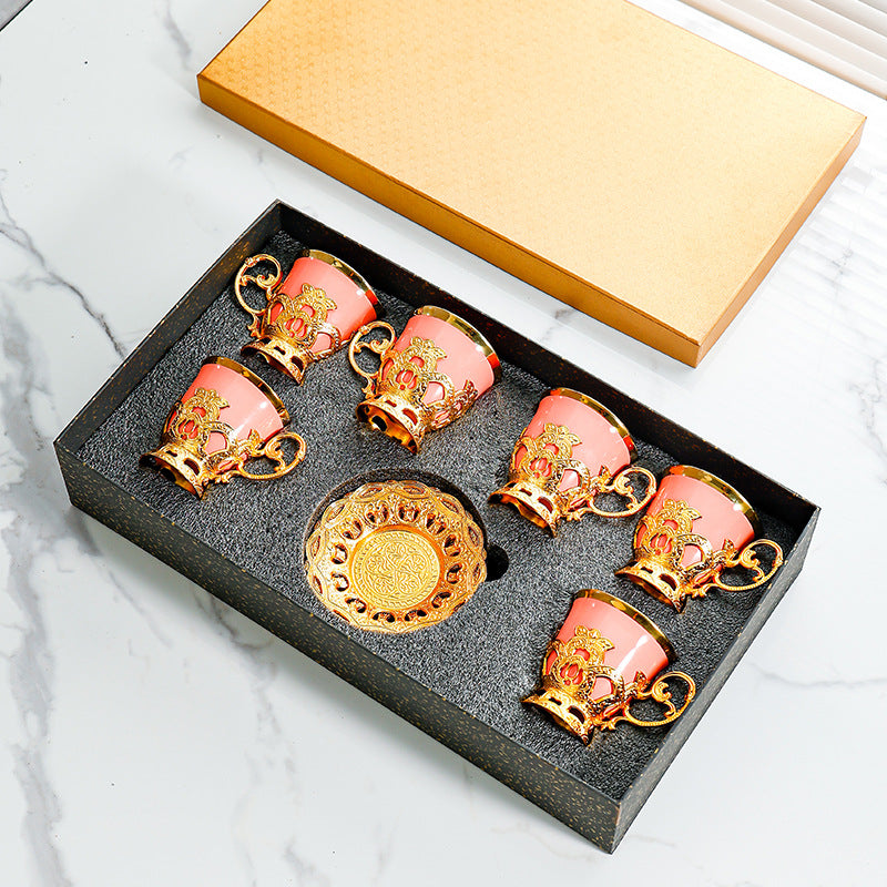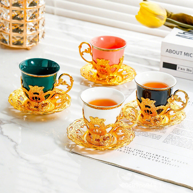 طقم فاخر من 6 قطع من الفخار يتكون كل طقم من فنجان وصحن