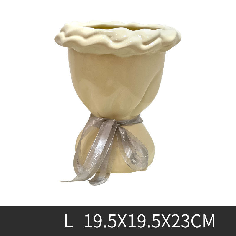 تضفي هذه المزهرية الخزفية لمسة عصرية على ديكور المنزل، حيث يتناسب تصميمها الحديث مع تنسيقات الزهور الطازجة والمجففة على حد سواء. فهي تمزج بشكل مثالي بين الجمال والطابع العملي.