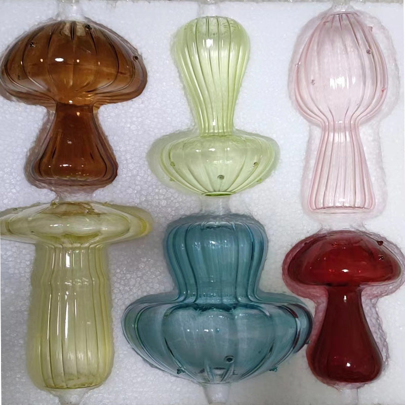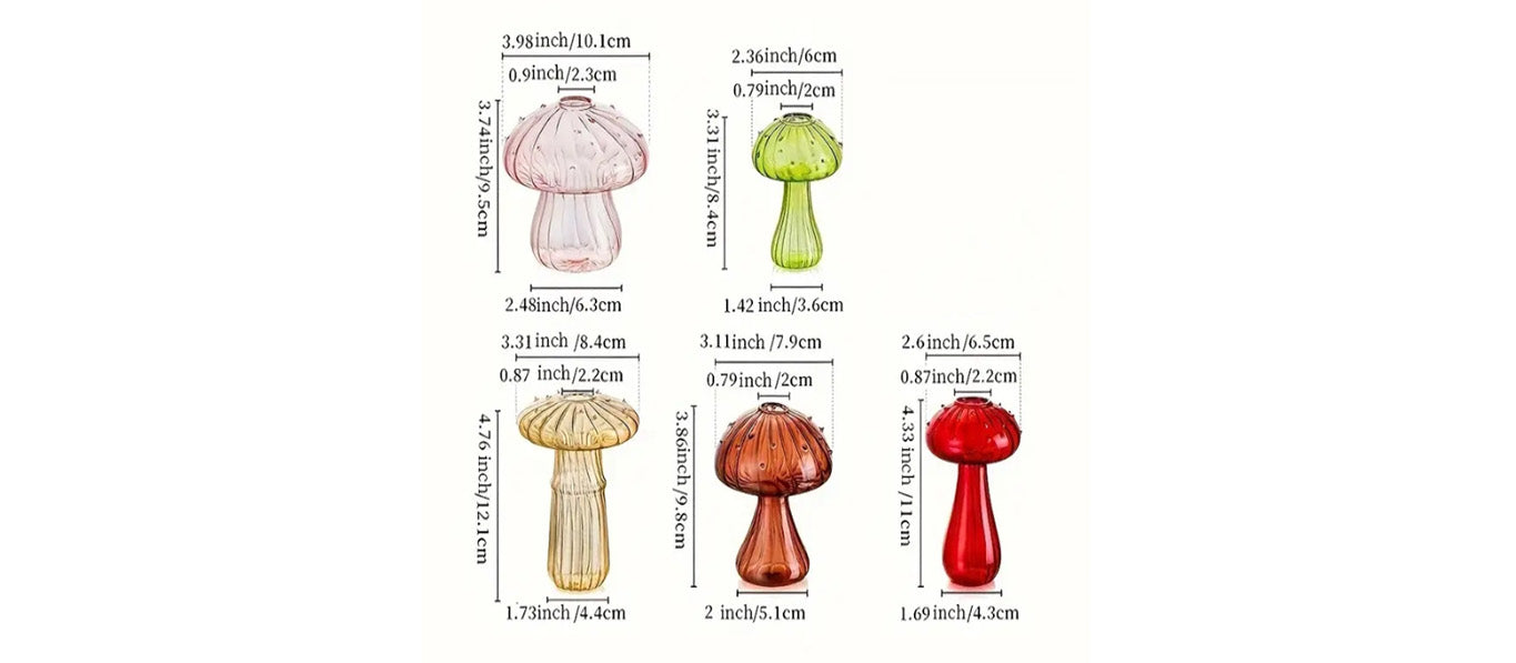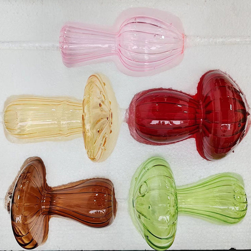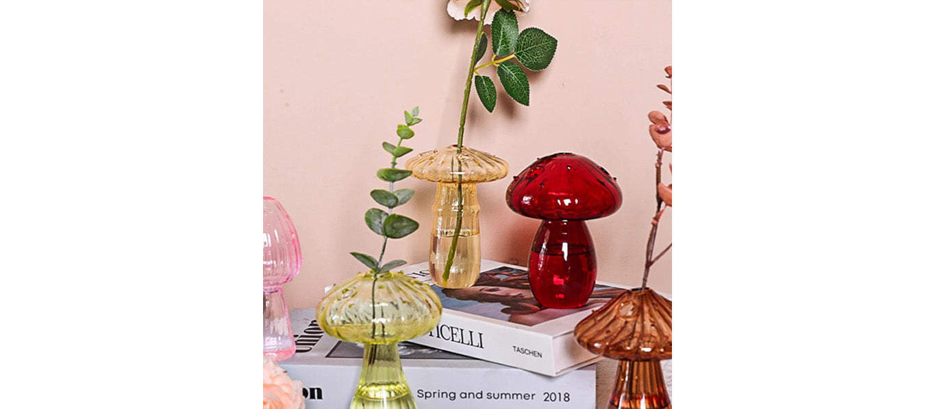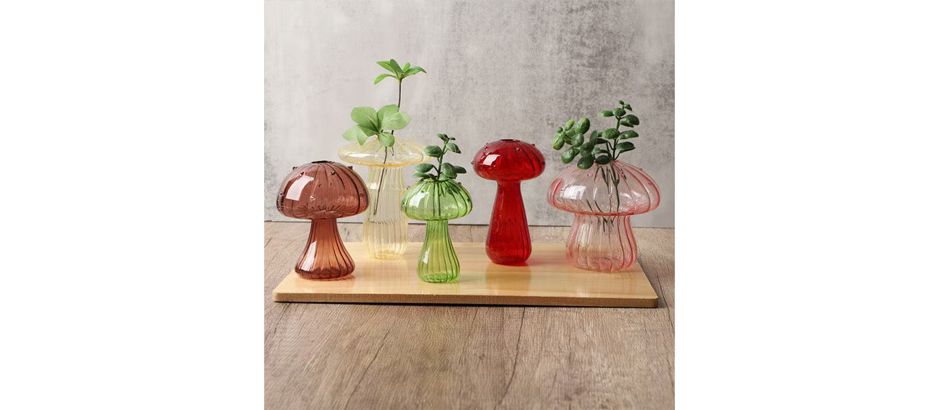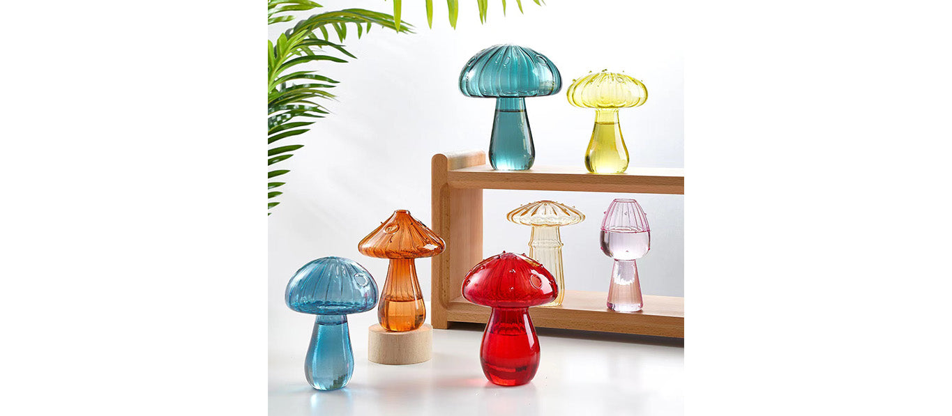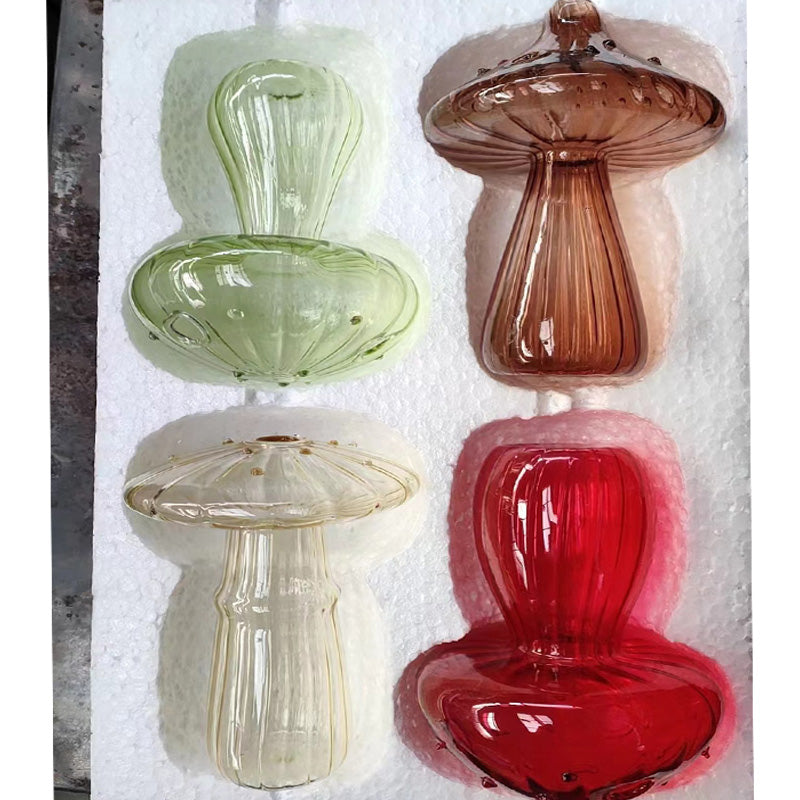 مجموعة مزهريات زجاجية على شكل زهرة الفطر تتكون من أربع مزهريات
