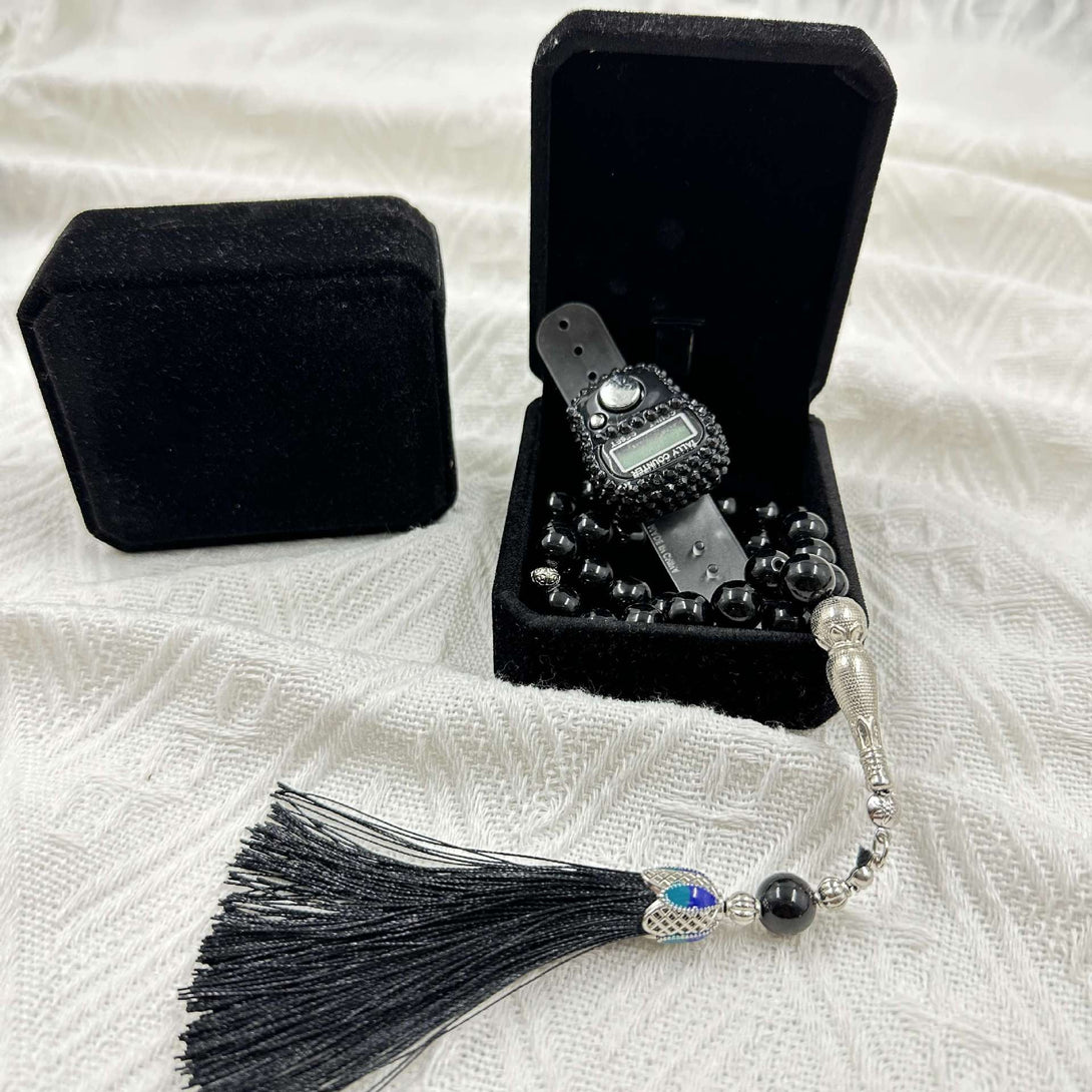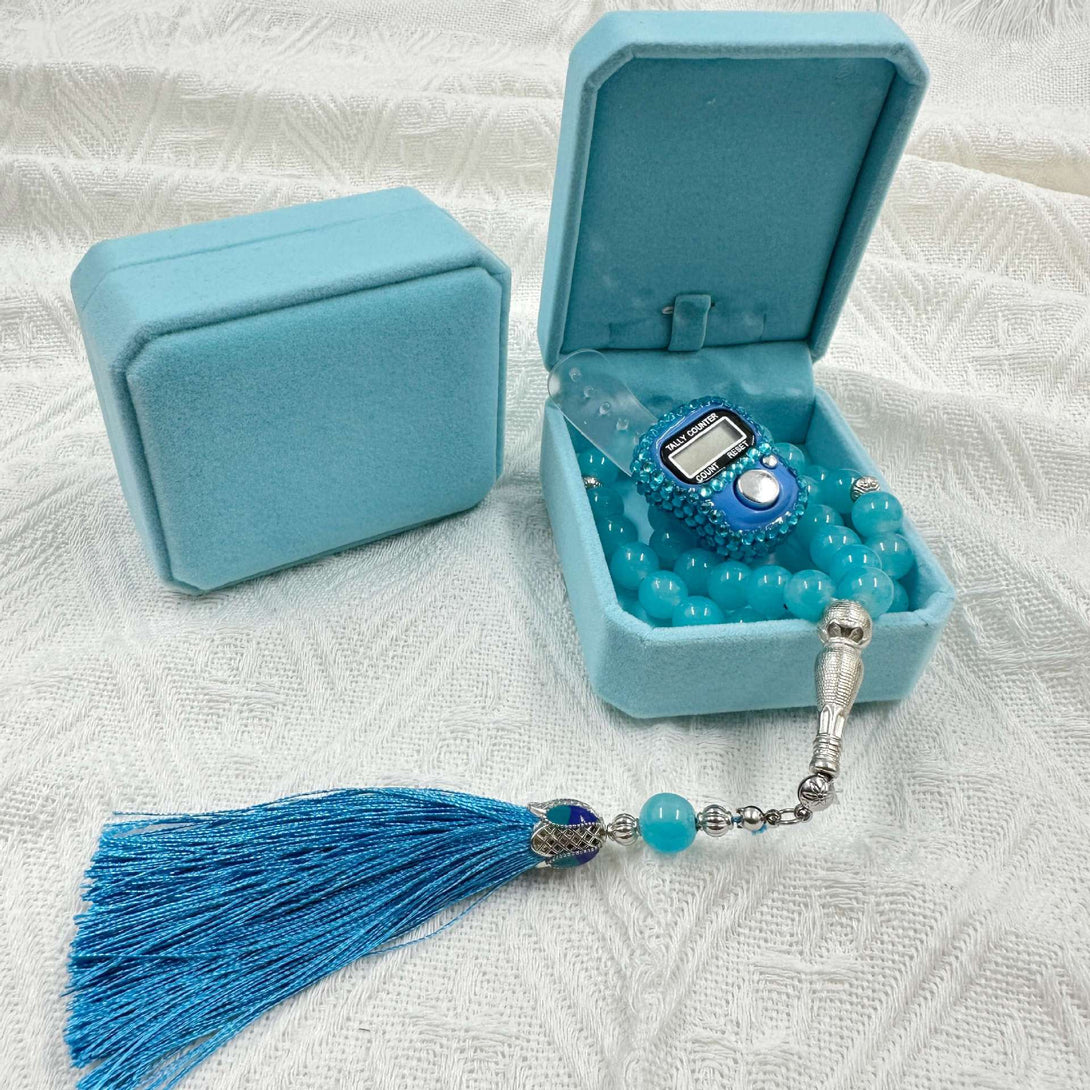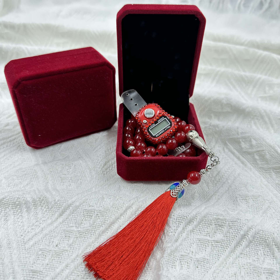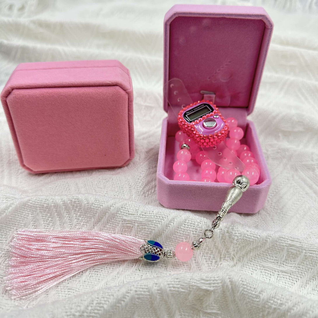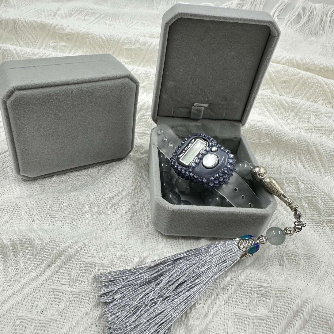 تتكون هذه المجموعة المميزة من مسبحة من 33 حبة زجاجية، يبلغ قطر كل منها 10 سنتيمترات، مصنوعة بدقة لتوفير تجربة عبادة مريحة وفريدة من نوعها.