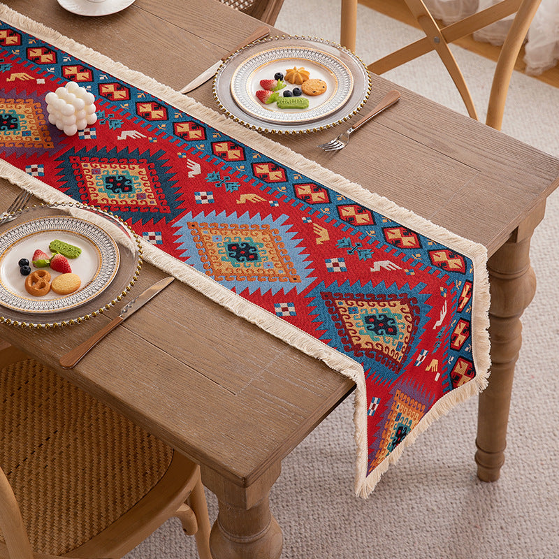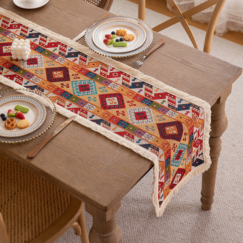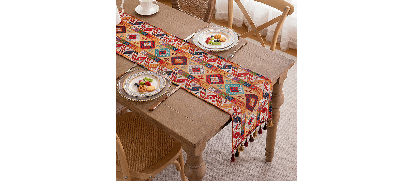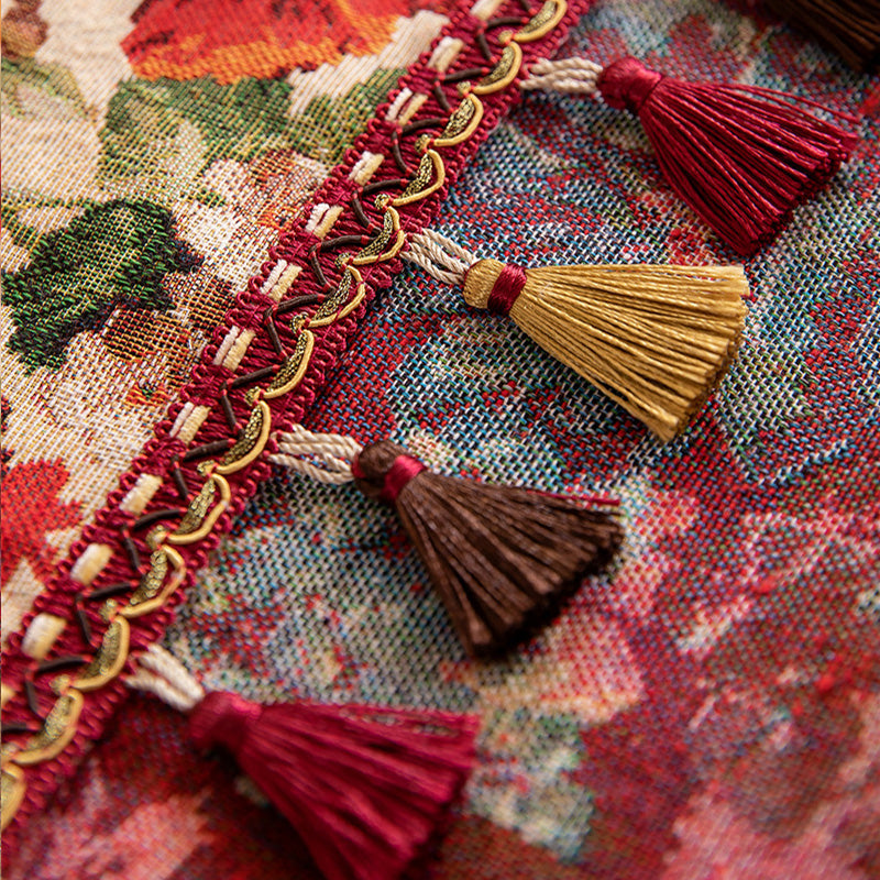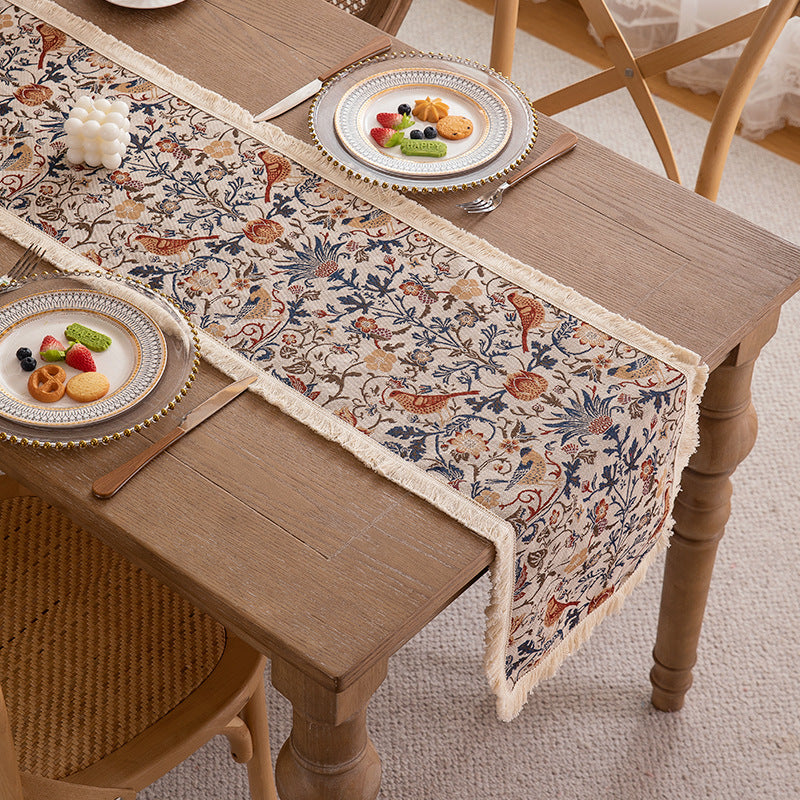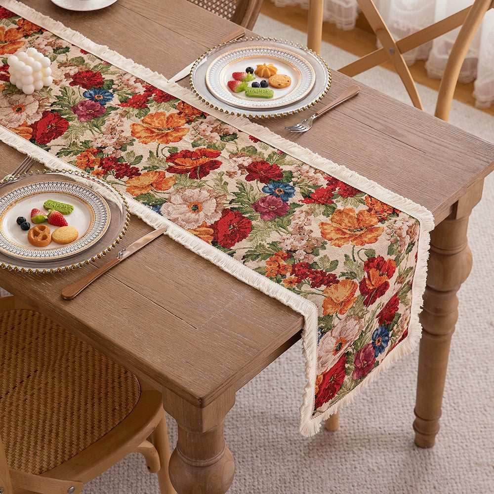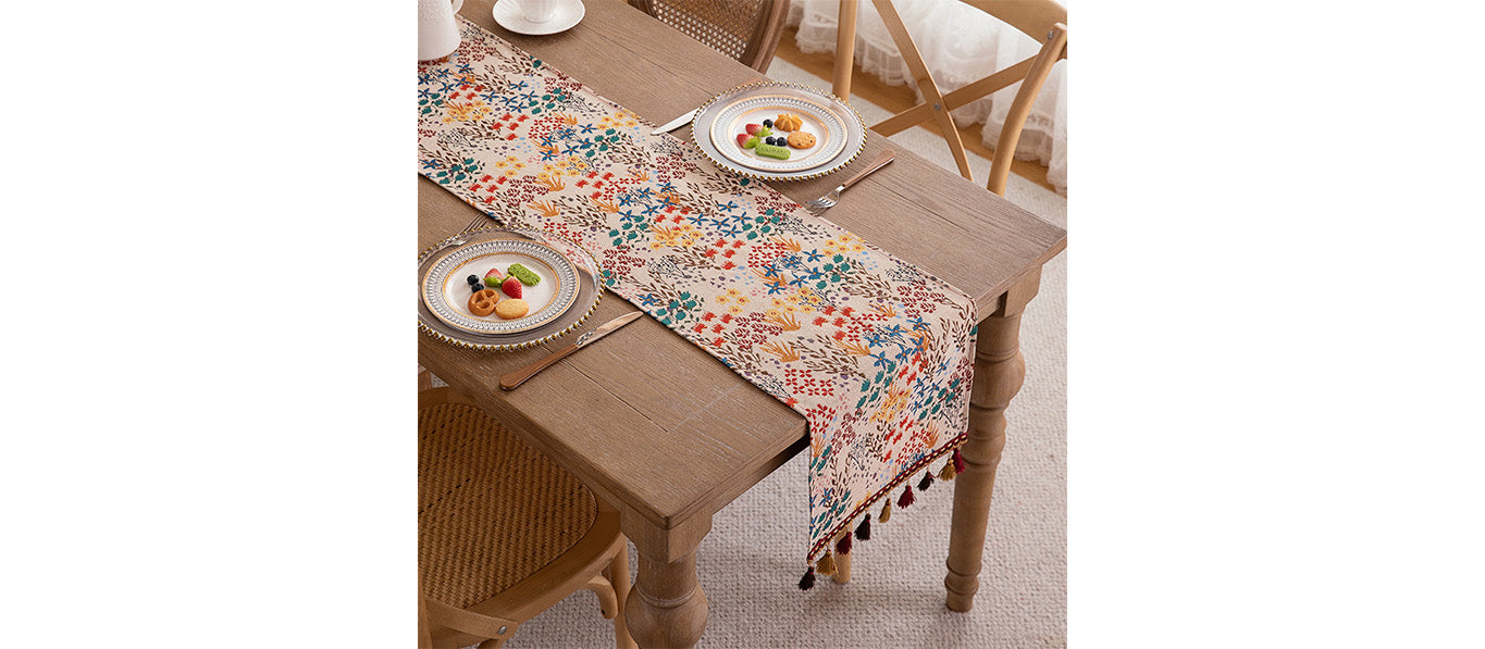 مفرش طاولة زهور عتيق مصبوغ بالألوان المائية وشاح طاولة زهور مع شرابات وأهداب