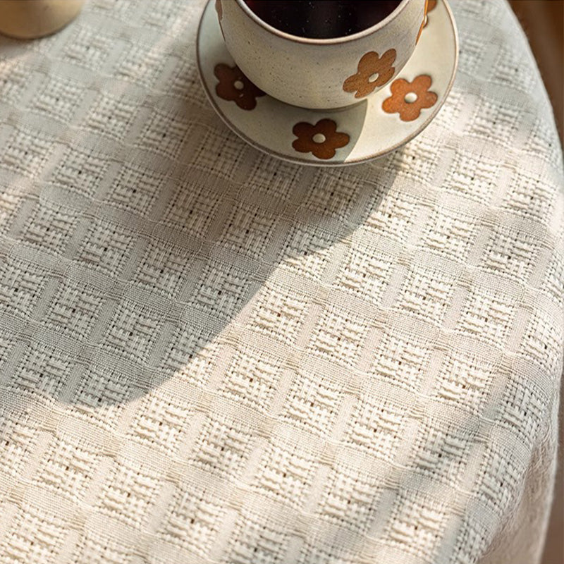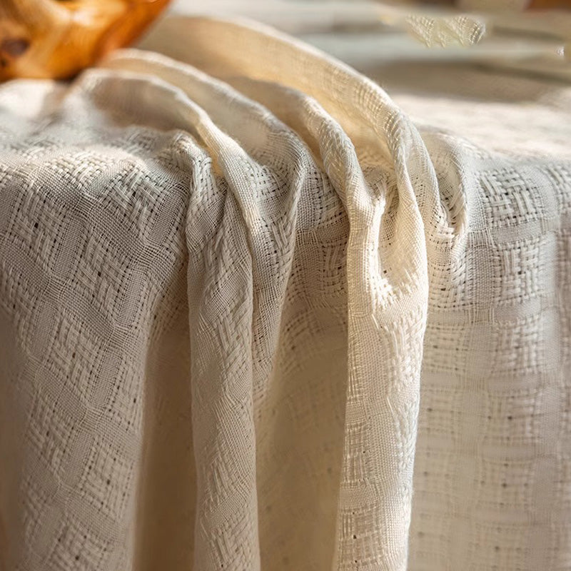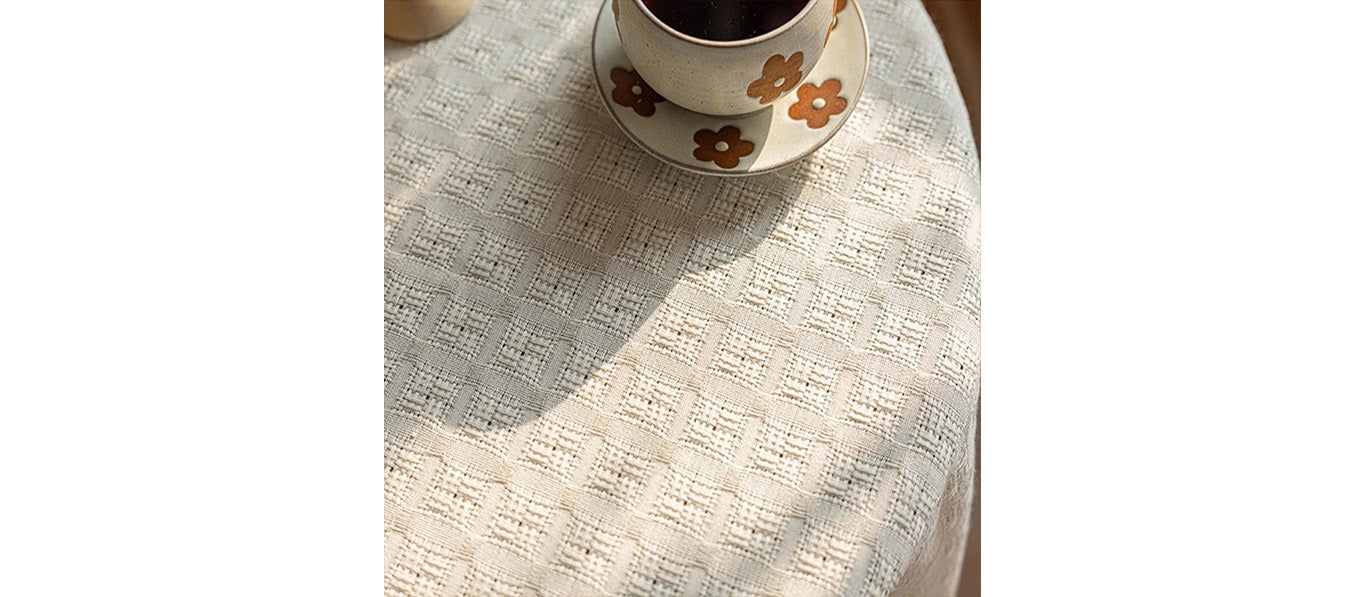 مفرش طاولة باللون البيج، منسوج بدقة من مزيج القطن والكتان، يضفي على طاولة الطعام لمسة من الأناقة البسيطة.