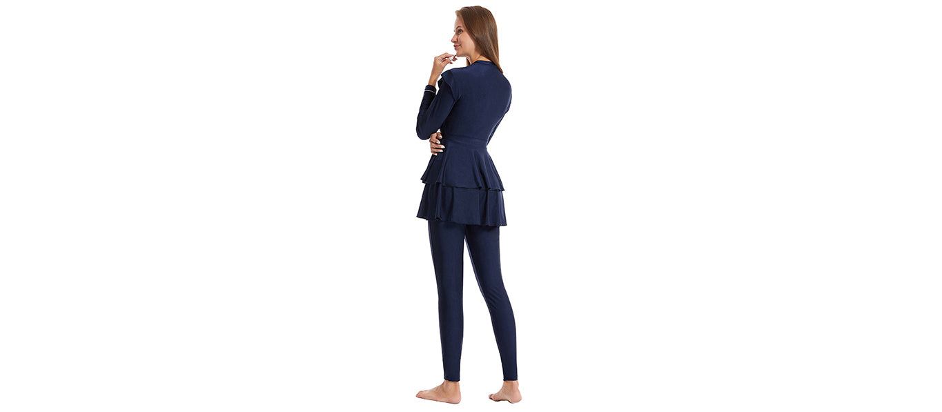 تتميز هذه المجموعة المكونة من ثلاث قطع من ملابس السباحة المحتشمة بتصميمها العملي والأنيق في الوقت نفسه، مما يجعلها مثالية للسباحة ورحلات الشاطئ.