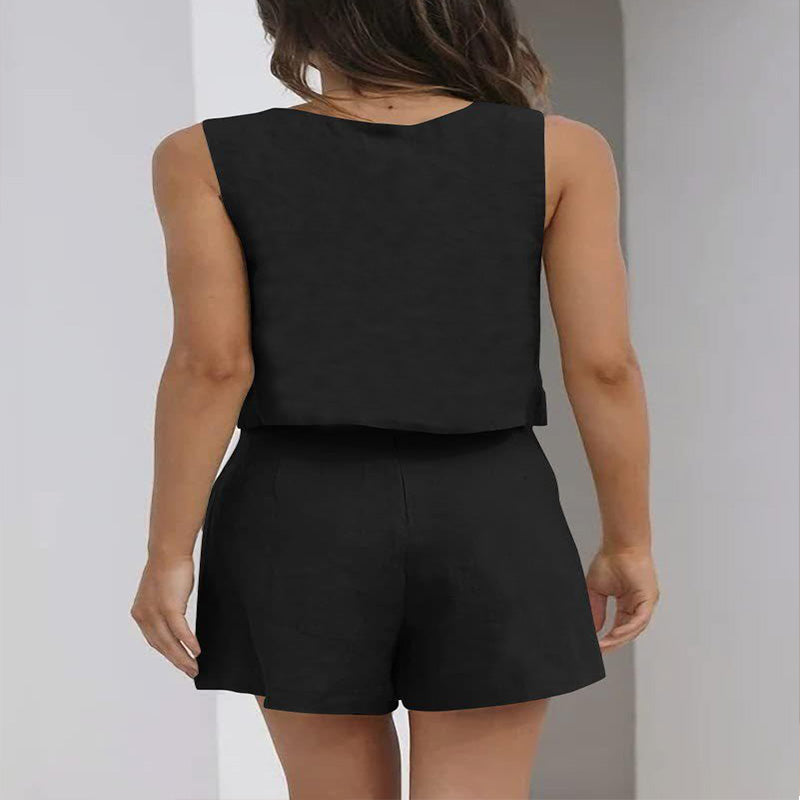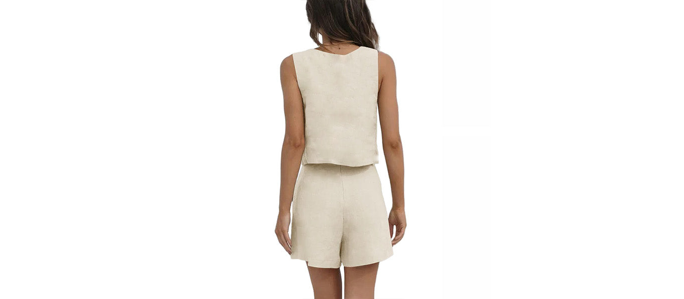 هذا الطقم النسائي المكون من قطعتين يمزج بين الراحة والأناقة الصيفية بشكل سلس، ويتألف من شورت خفيف من الكتان وقميص قصير برقبة مربعة. يوفر هذا الطقم التهوية والأناقة العصرية، وهو الخيار المثالي للمناسبات غير الرسمية.