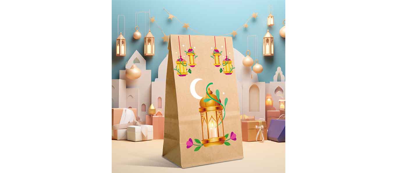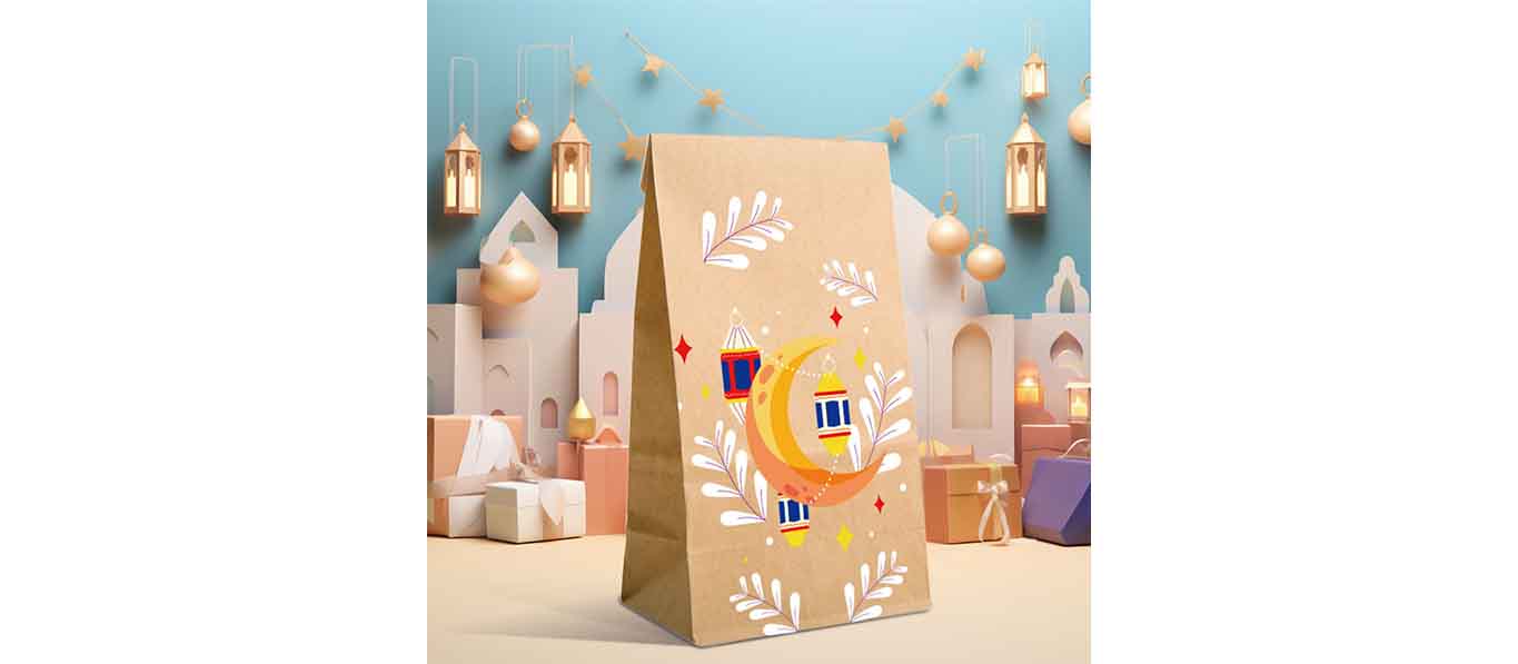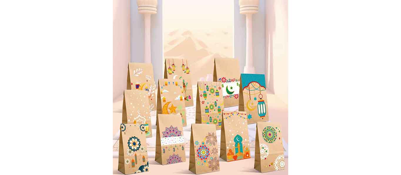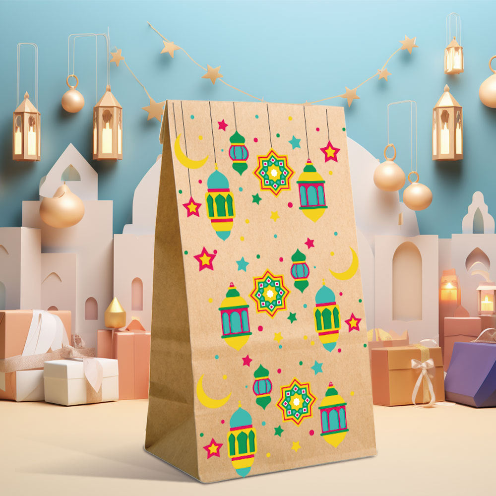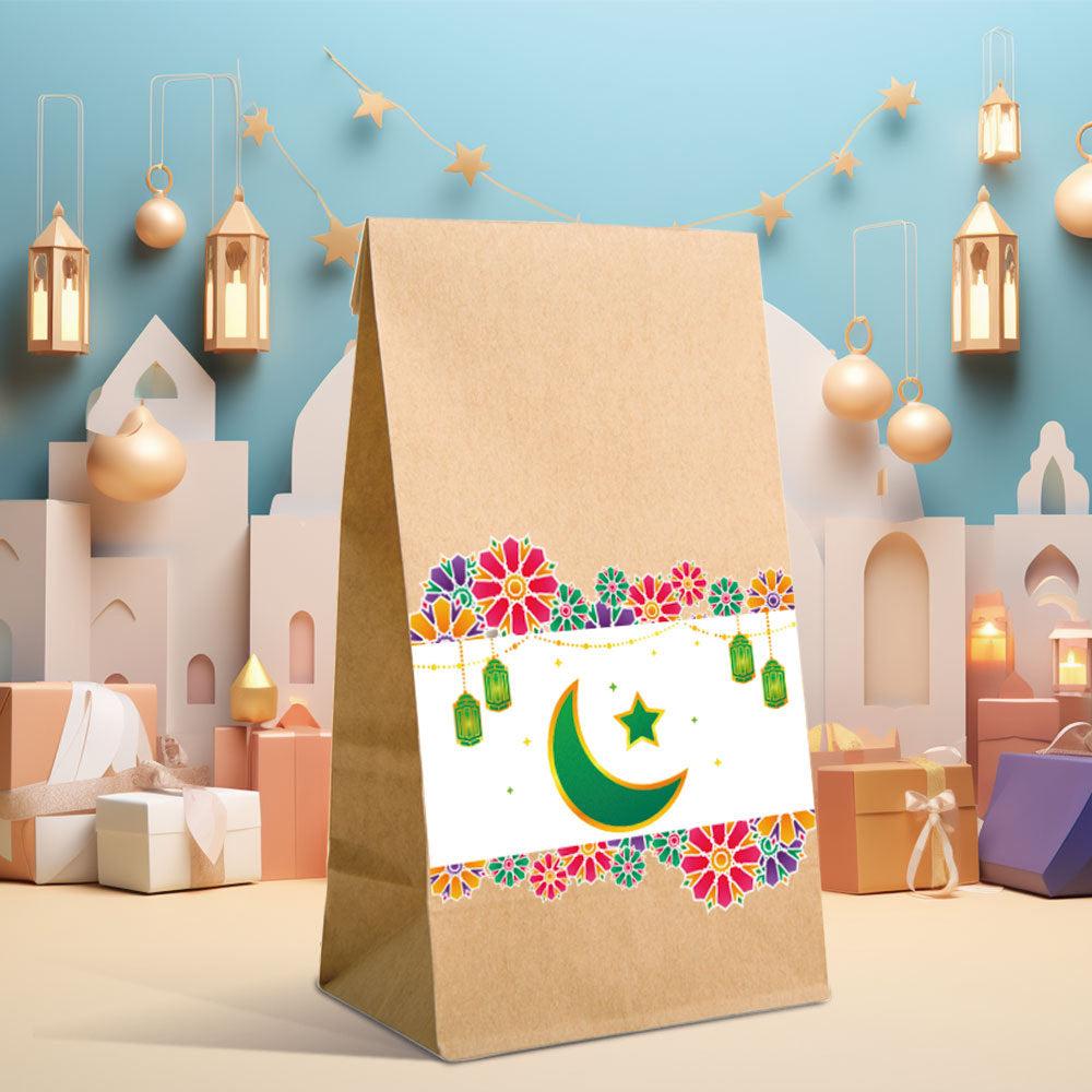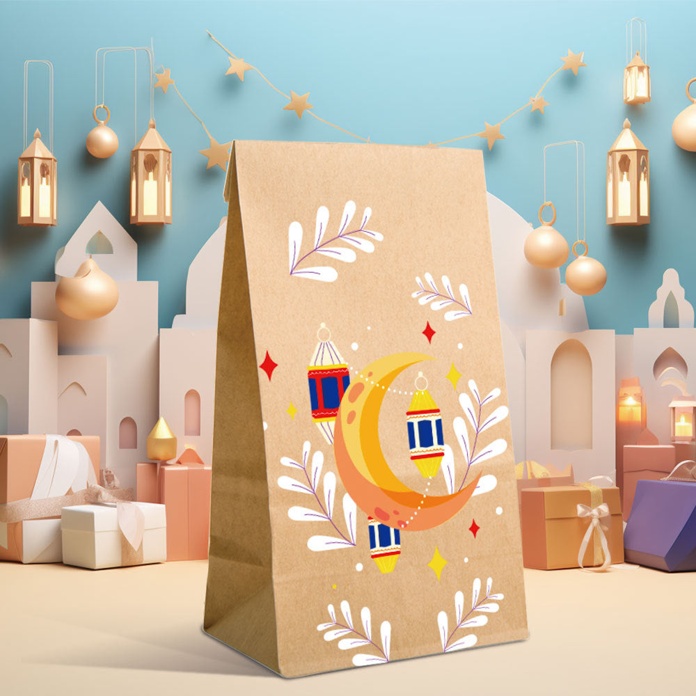12 حقيبة حفلات من ورق الكرافت، حقائب هدايا العيد مزينة بزخارف القمر والنجوم
