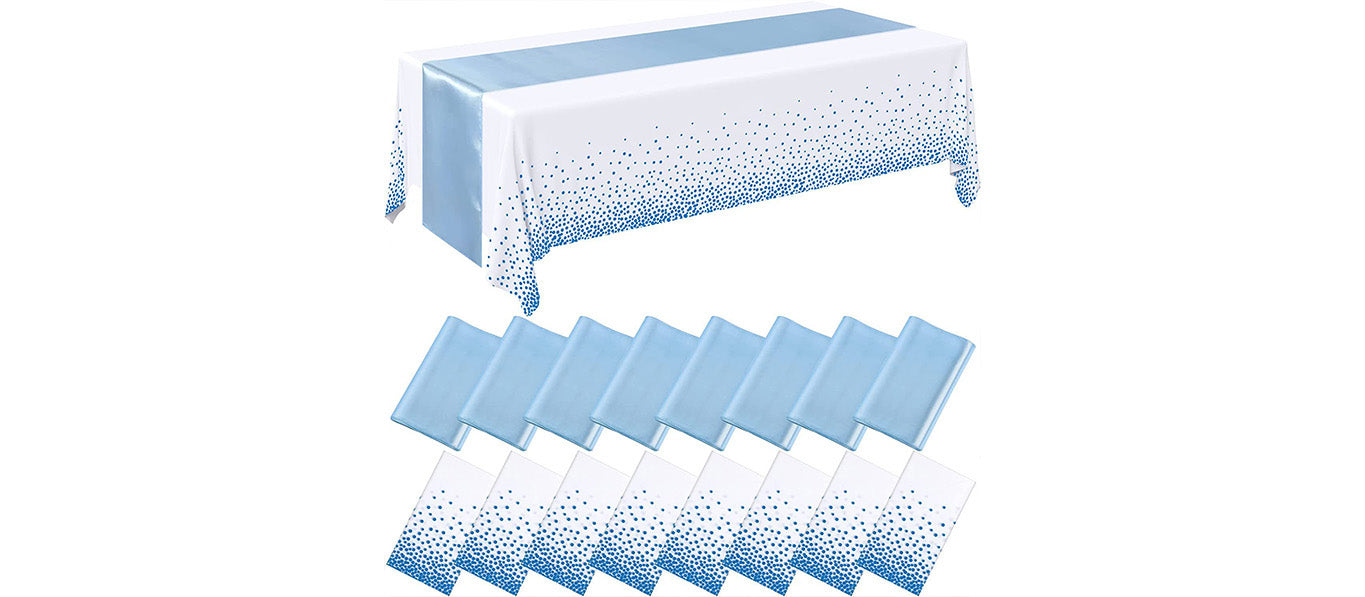 المقاس: 137*274 سم مفرش طاولة منقوش بنقاط 8 قطع + 30*275 سم راية طاولة 8 قطع