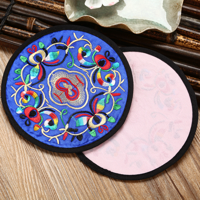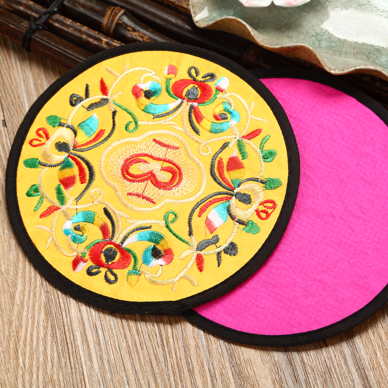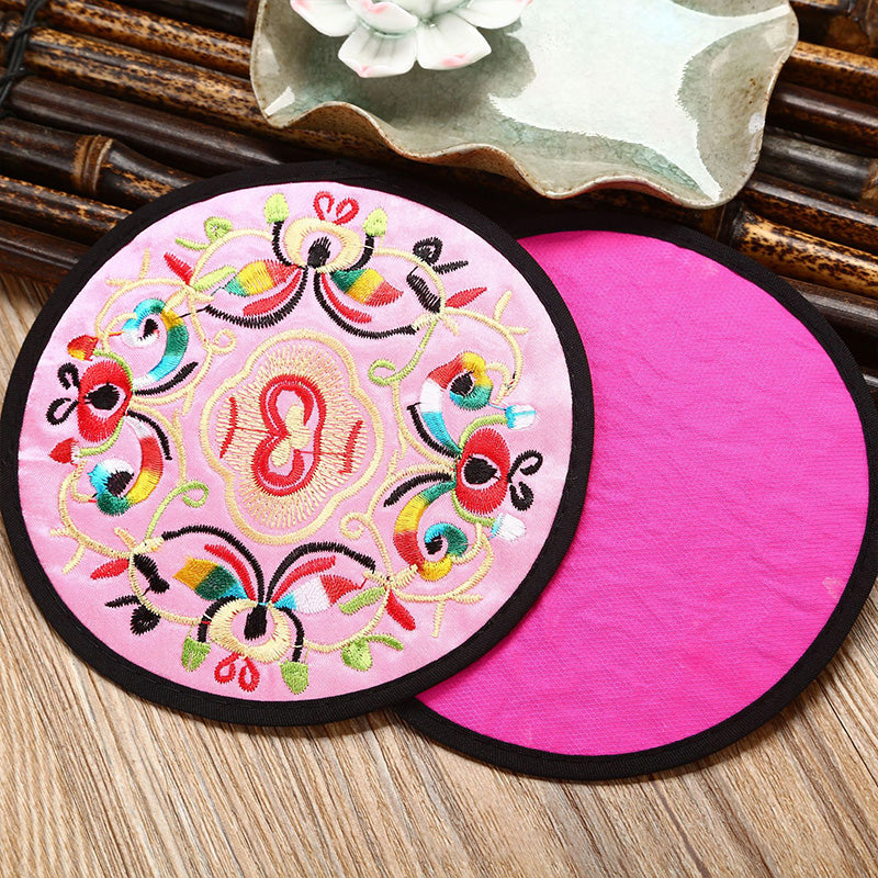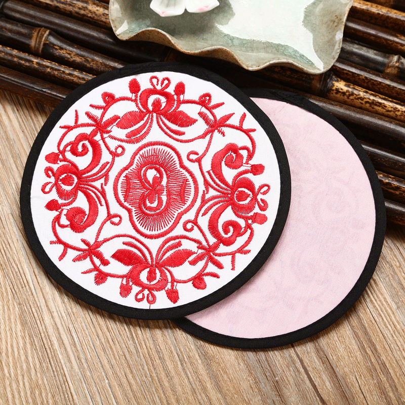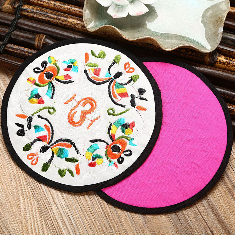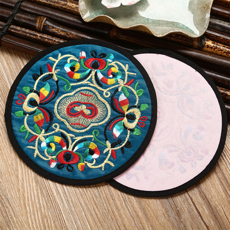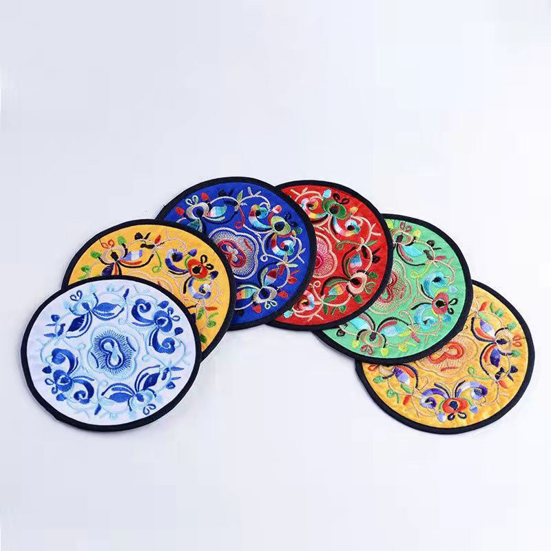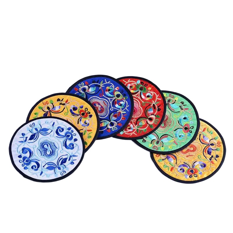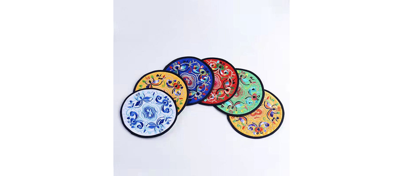 6 قواعد أكواب مطرزة ومغطاة بالقماش