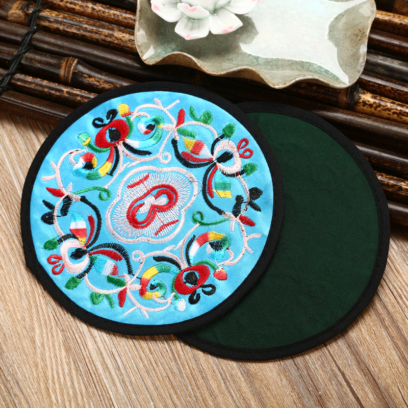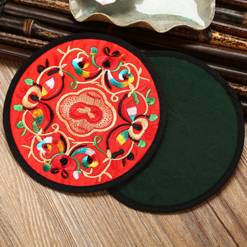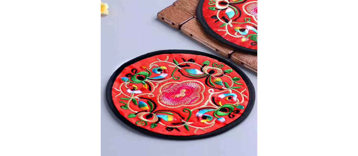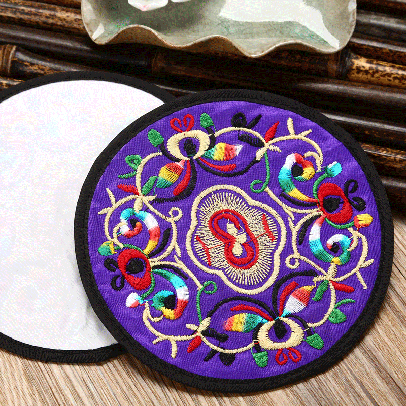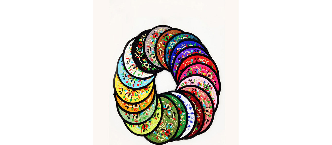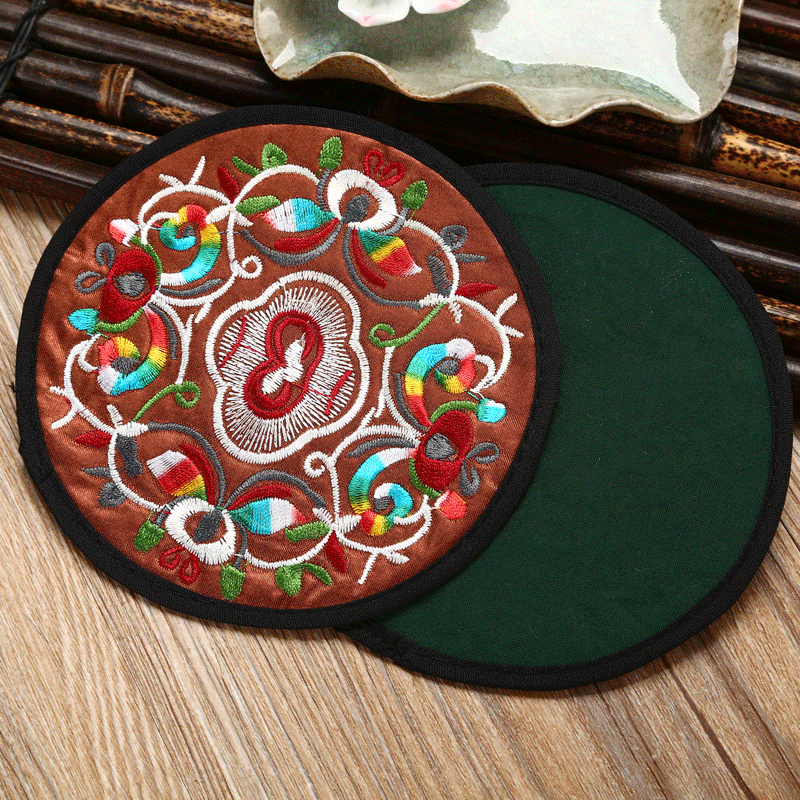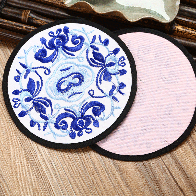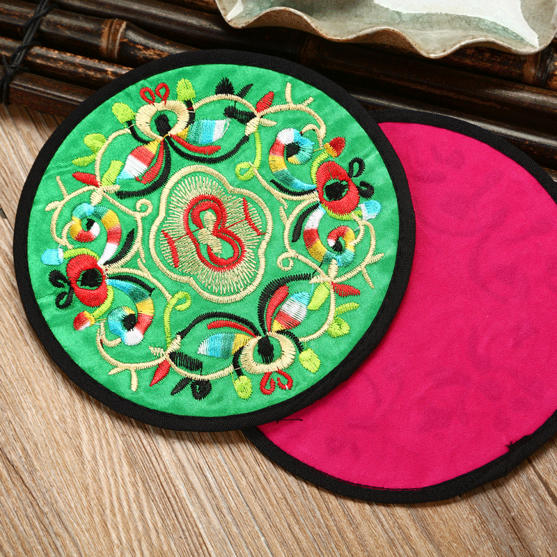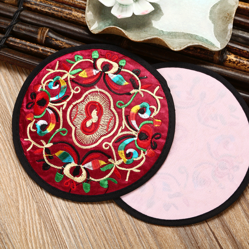 6 قواعد أكواب مطرزة ومغطاة بالقماش