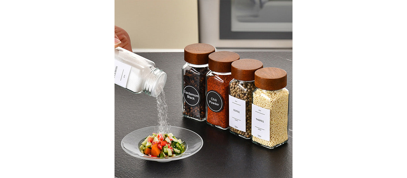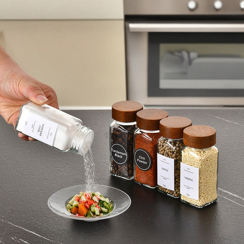تتميز هذه العلبة الزجاجية للتوابل بتصميمها المربع الأنيق، وهي مصنوعة من خشب الصنوبر الطبيعي، مما يجعلها خيارًا مثاليًا لتخزين التوابل مثل الفلفل الأسود.
